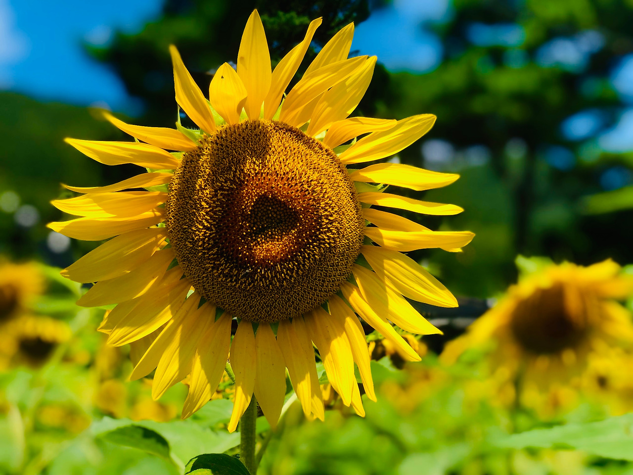 이래저래 내가 가장 좋아한 꽃은 해바라기 sun flower였다. 내가 심은 첫 씨앗일 뿐 아니라 밝고 화사한 노랑 색이라서 좋았다. 가운데 동그란 형태가 있어 웃는 얼굴 같았다. 그 동그라미가 해를 상징하는 것 같아서 이름도 해를 바라보는 '해바라기'가 되었겠다.