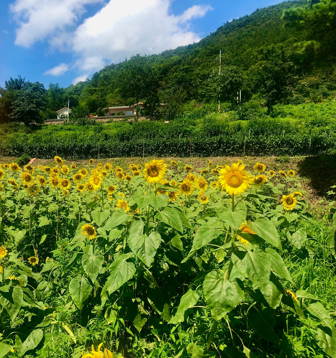 완주의 송광사 너머 산 고개를 돌면 위봉사라는 자그만 절이 나온다. 위봉사 앞 동네 언저리에 해바라기가 무리 지어 피었다고 지인이 톡을 보내왔다.