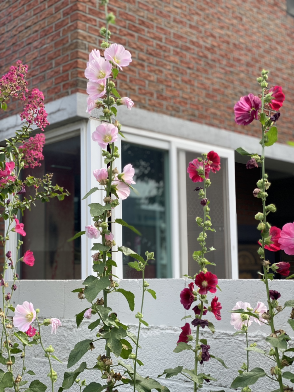 접시꽃은 희한하게도 씨앗을 뿌린 그 한 해에는 잎만 자란다. 그 다름 해에 비로소 화려한 자태를 뽐낸다. 그리고 태양이 이글거리는 여름을 강렬히 이겨낸다. 4월에 첫 번 공방의 땅에 접시꽃 싹이 난 것을 그대로 옮겨왔다. 그리고 몇 포기를 나눠서 줄리아에게 준 것인데 다 쳐냈다니 안타깝다. 꽃씨가 주변에 떨어져 여름을 나고 가을 겨울 그리고 봄에 싹을 틔우고 여름에 키가 무럭무럭 자라서 꽃이 핀다.
