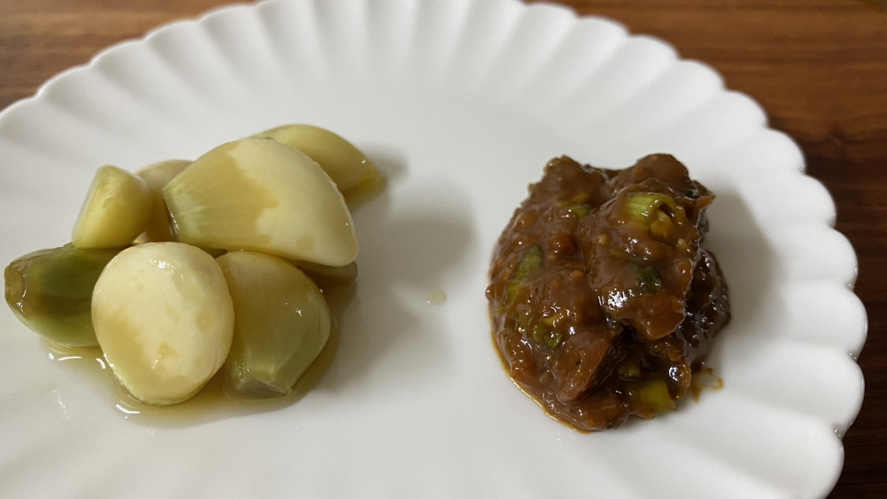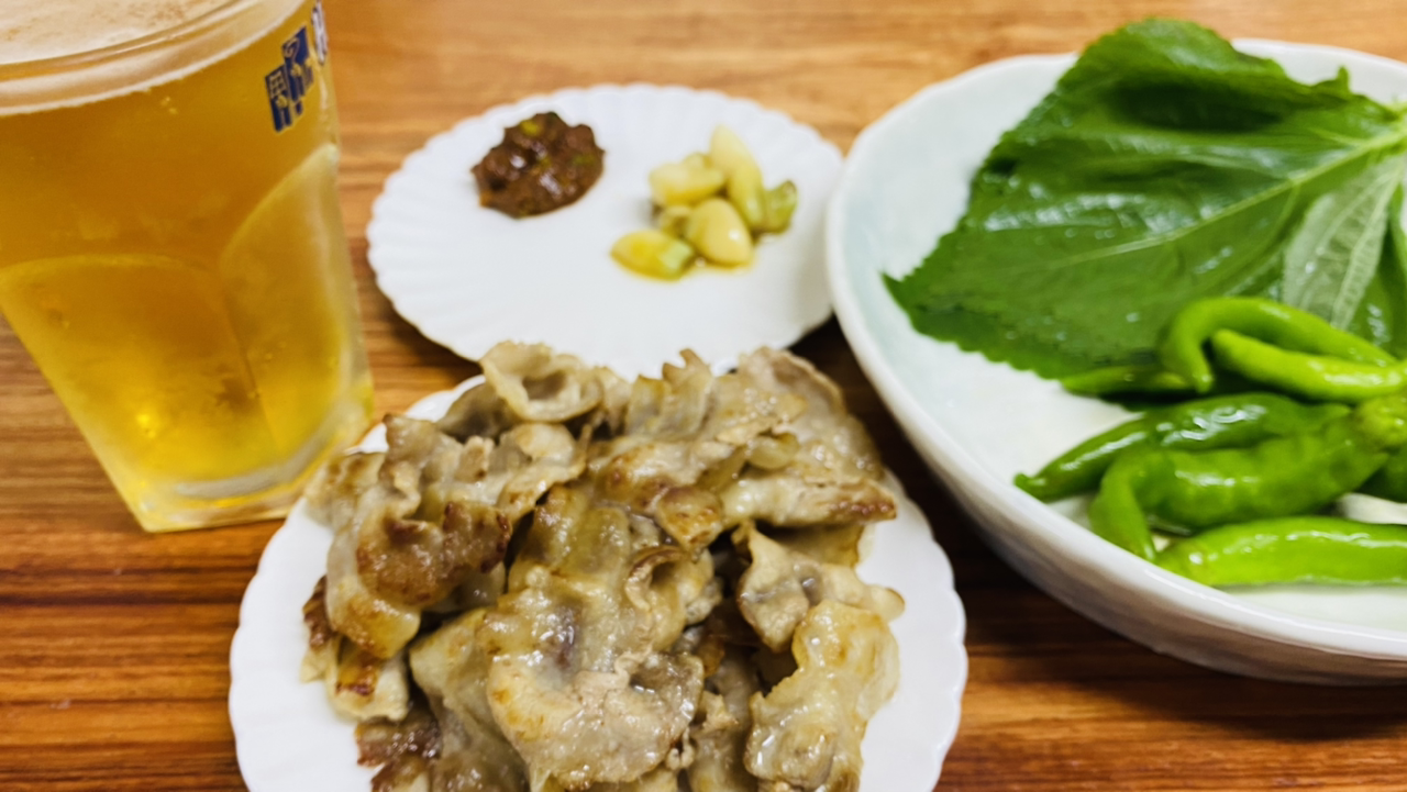 결국 아파트에 와서 좀 더 프라이팬에 굽고, 시어머님 표 마늘장, 나의 텃밭에서 딴 고추, 그리고 맛있는 된장 양념에 다시 맛있게 먹었다. 밤 9시 30분이다.