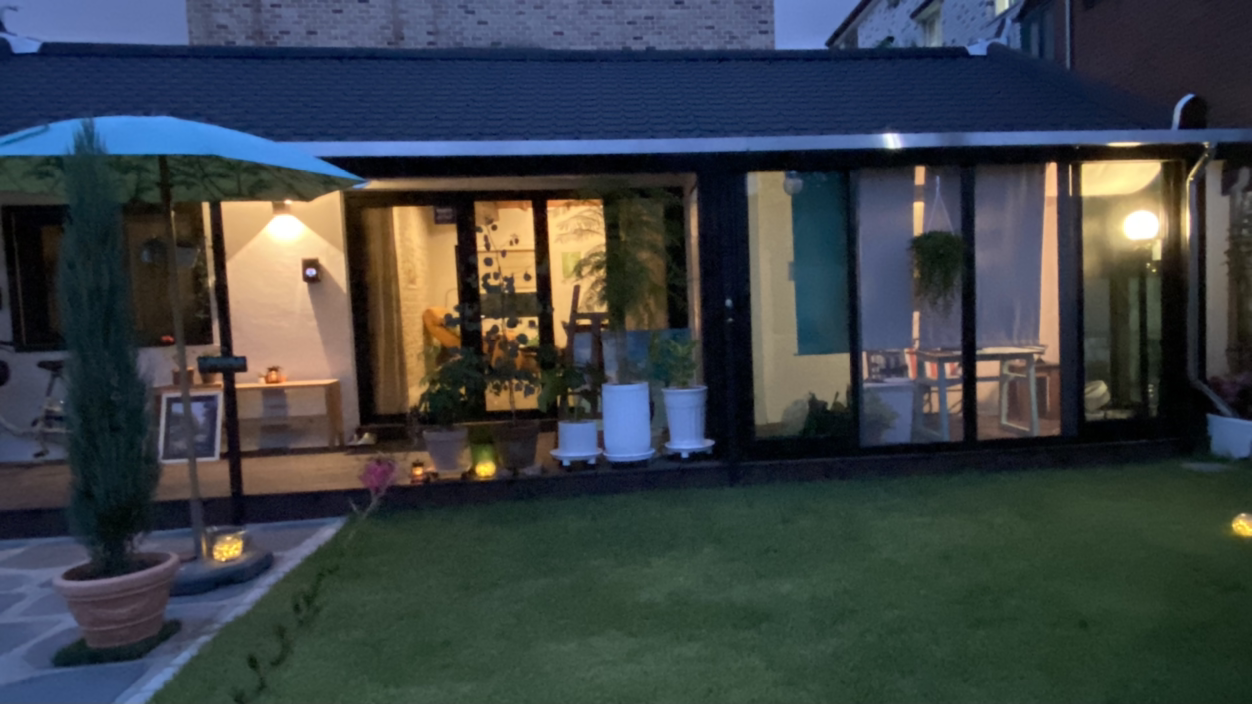 얼마 전 고민 끝에 데크 일부에 아주 작게 유리 새시를 했다.