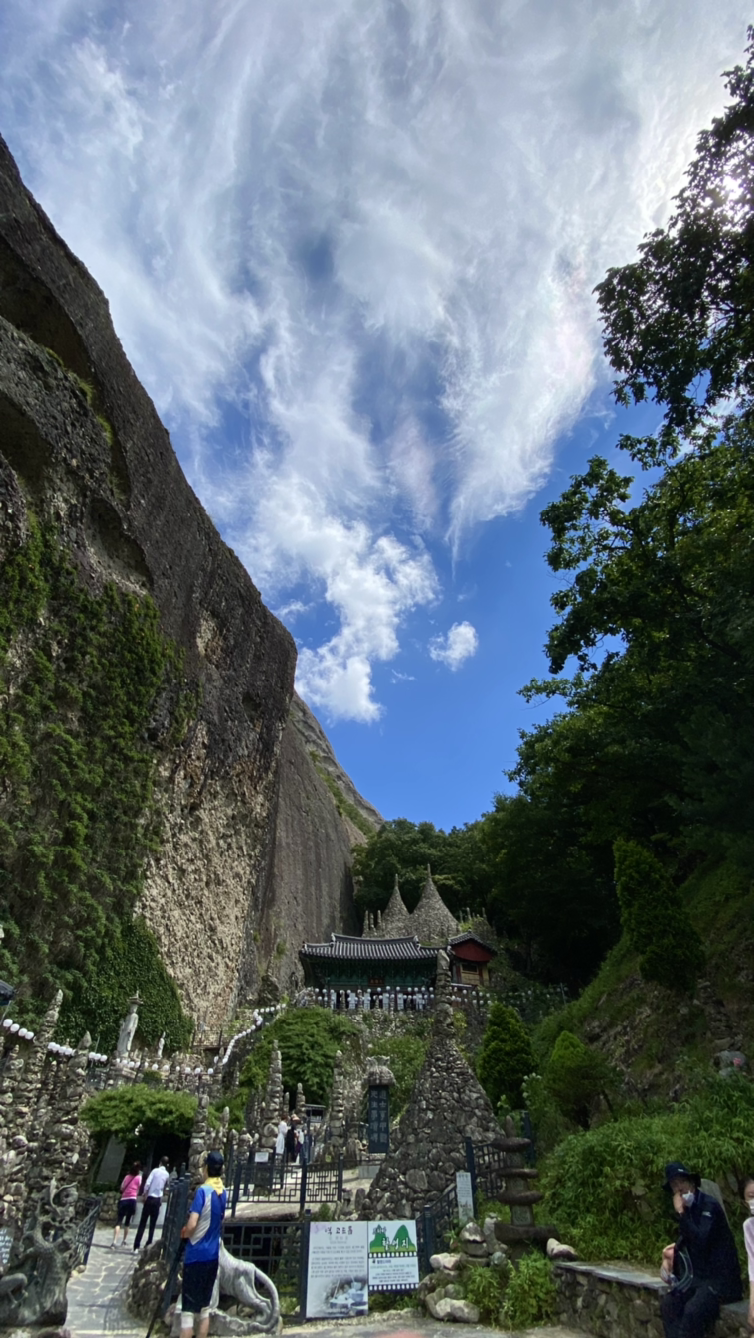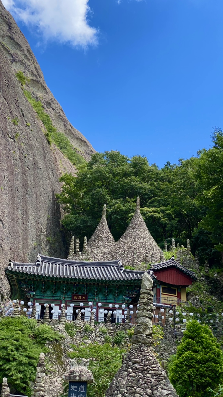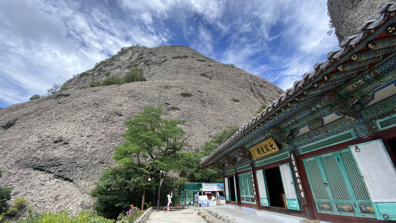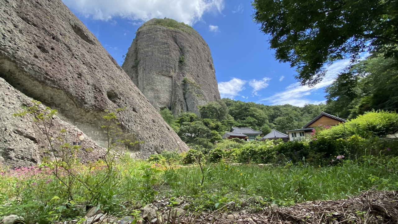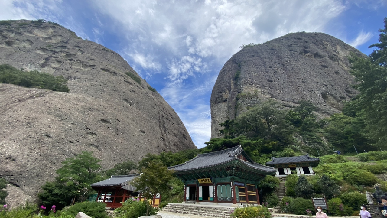 드디어 '은수사’라는 절이 나왔다. 그러나 아래 보이는 건물은 은수사 들어가기 전에 사용하라는 '화장실'이다. 우리나라 화장실들은 참 깨끗하다. 화장실 뒤편으로 암 마이봉이 보인다.
