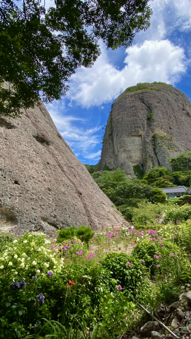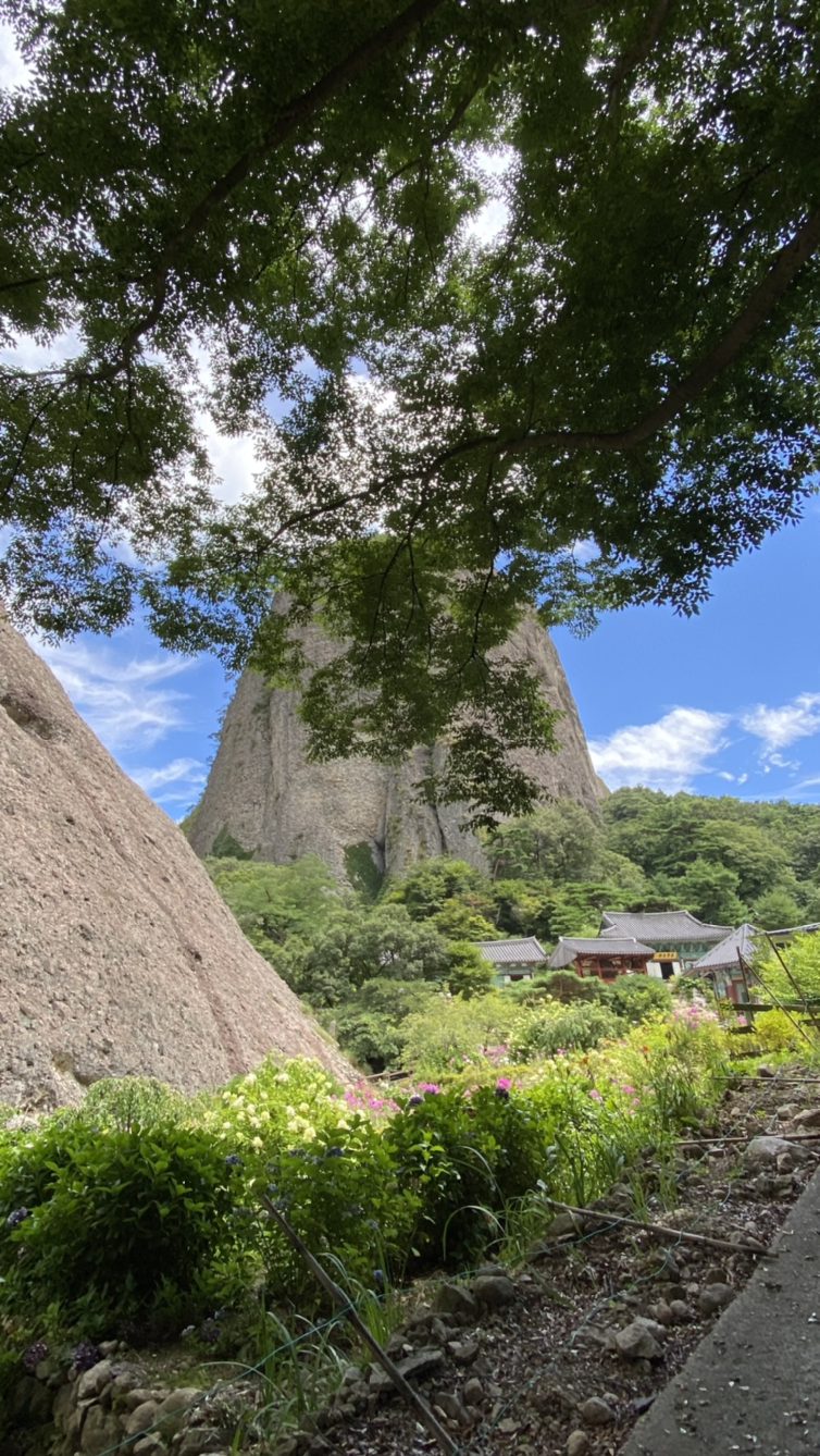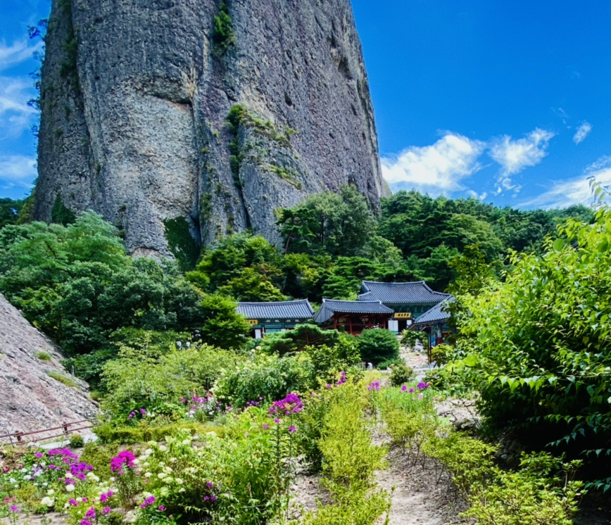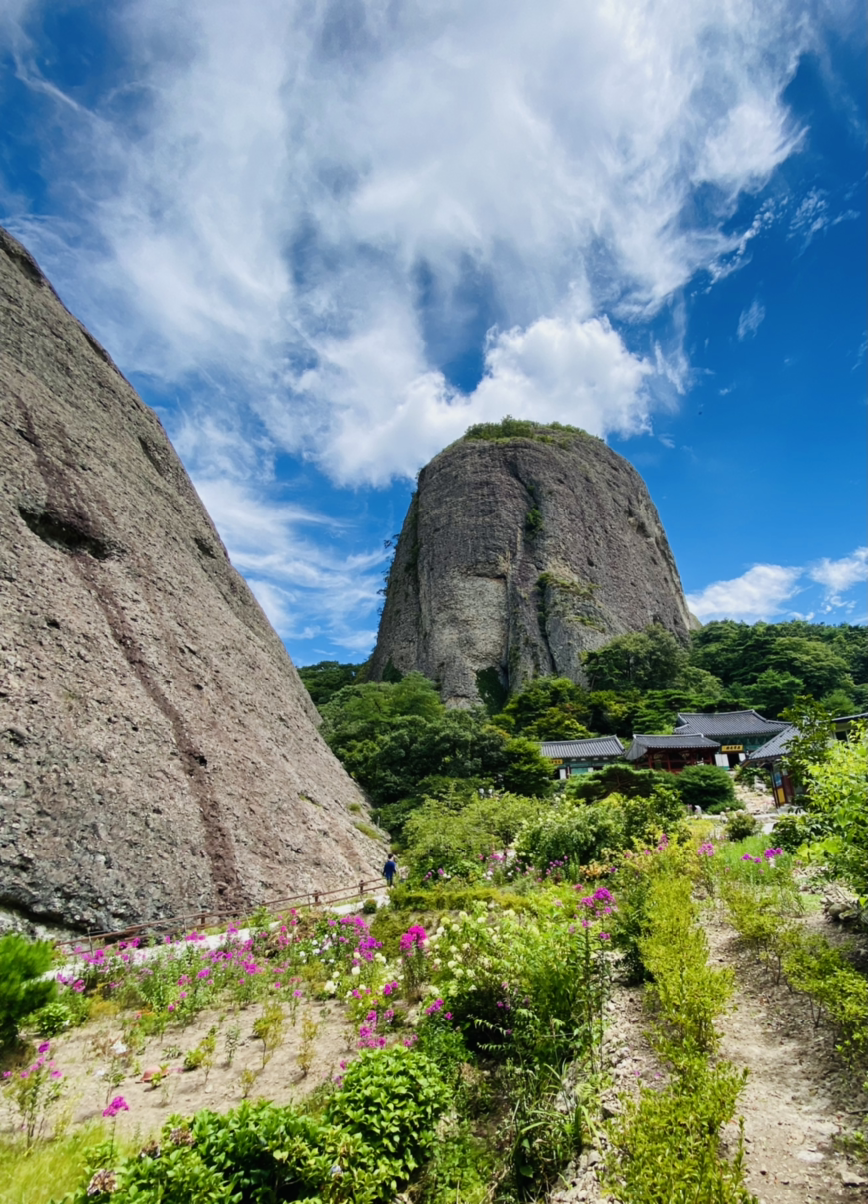 정원이 아름다운 절이라고만 하기에는 부족하기 그지없다. 그야말로 무릉도원이다. 하염없이 돌계단에 앉아있다가 다시 고개를 들어 하늘을 보고, 꽃들을 보고, 마이봉을 바라본다. 여러 방향의 돌계단을 올라 본다.
