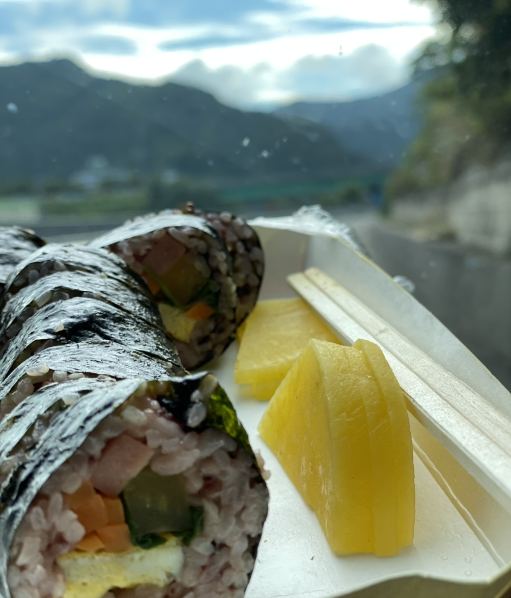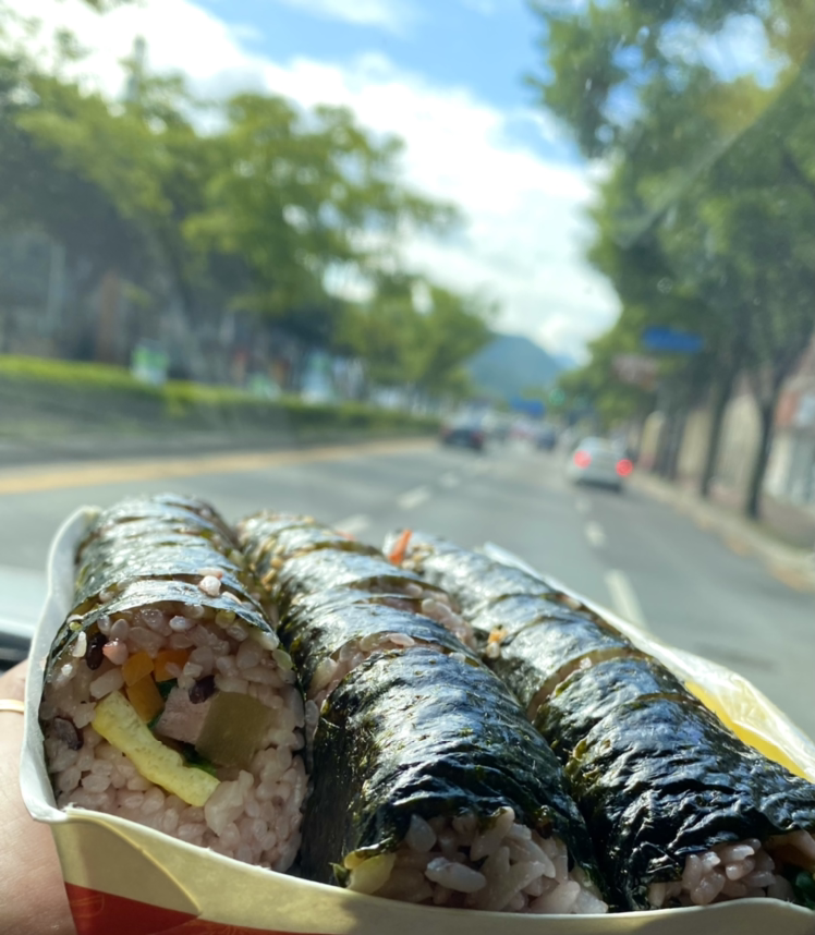 김밥을 준비했다. 선물 받았던 음료와 커피가 생각나서 스벅에도 들렸다.