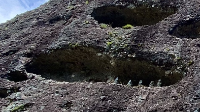 이렇게 높은 구멍에 아기 돌탑을 놓다니. 방법은? 크레인으로 올려서 놓기/암벽 줄타기로 놓기. 어떻게 놓은 것인지 참으로 궁금하다.