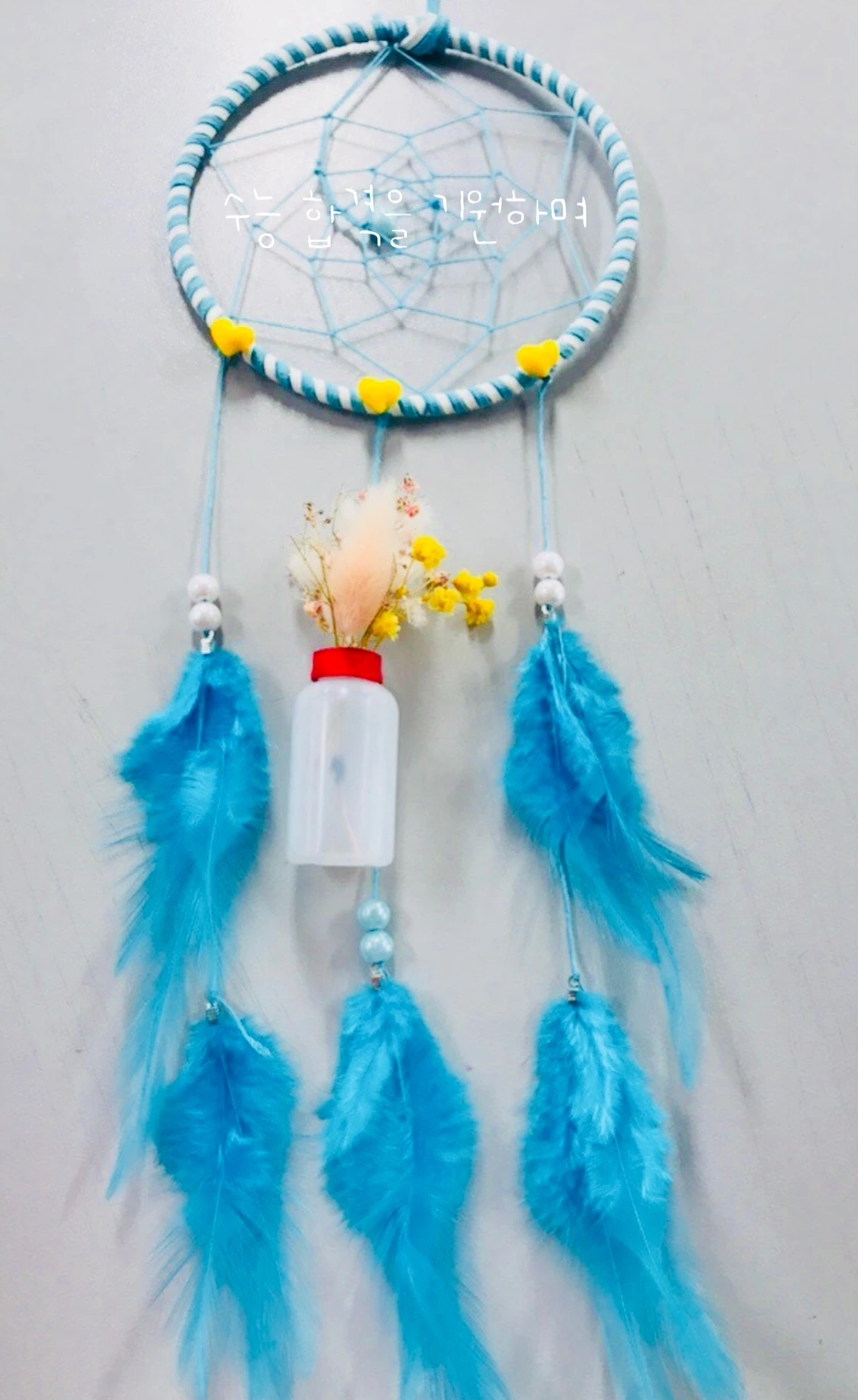 그린 인테리어의 하나로 지끈을 이용한 풍선 등이나 옷걸이나 신발 끈 등을 재활용한 드림캐처 등을 해 보았다. 우리는 매년 수능 대박 기원 등을 다는 학교다. 미술 선생님의 지도로 학생들이 협업해서 등을 만든다. 나는 학생들과 드림캐처를 만들어서 로비에 일렬로 장식을 했다. 정말 아름다운 드림캐쳐가 색색이 바람에 나브 껴서 예뻤다. 역시 교사가 잘 알아야 학생이 잘하는 것이 아니라 방향을 제시하고 안내하는 것이 가장 중요함을 다시 깨달았다. 나보다 학생들이 훨씬 잘 만든다.