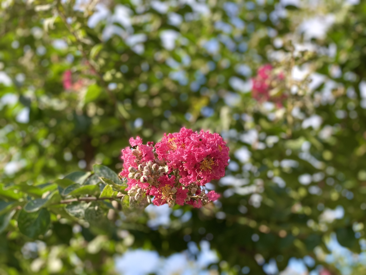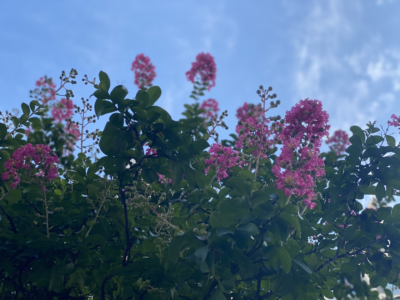 공방에서 이전한 배롱나무에 지난해에는 꽃이 피지 않았다. 올봄에 사장님께 여쭤보니 초봄에 가지를 싹둑(적당히) 잘라 줘야 한단다. 그래야 그 부분에서 새순과 곁가지가 나오고 꽃을 피운단다. 이번엔 그렇게 해 보니 꽃이 만발했다. 8만 원 정도 주고 샀던 배롱나무가 몇 곱절 가치가 있게 잘 자랐다.
