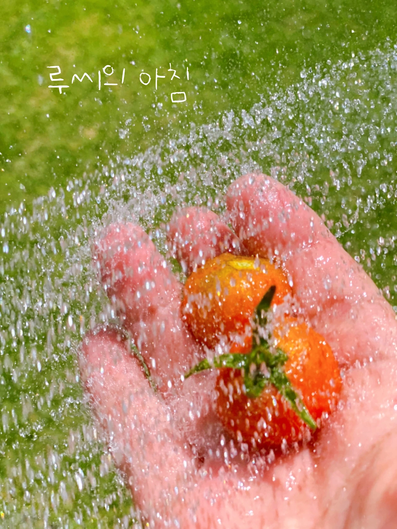 땀 흘리며 일하다가 잔디 옆의 텃밭에서 토마토를 따 물로 헹궈 입에 넣는다. 갈증이 조금 가신다.
