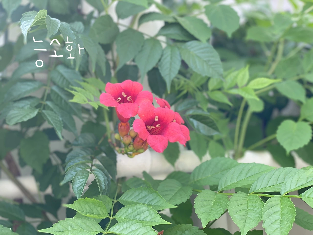신종 능소화와 대비되는 재래종 능소화야말로 능소화의 참 매력을 발산한다. 나의 공간에는 재래종을 심지 않았는데 내년 봄이나 가을에 한 그루를 심어 볼까 생각 중이다. 궁리 중인 이유는 너무나 흐드러져서 감당하기 벅찬 점이 있기 때문이다. 신종은 색이 더 붉고 요란하지 않다. 아무래도 재래종 능소화는 타인의 담벼락에서만 봐야 할지도 모르겠다.