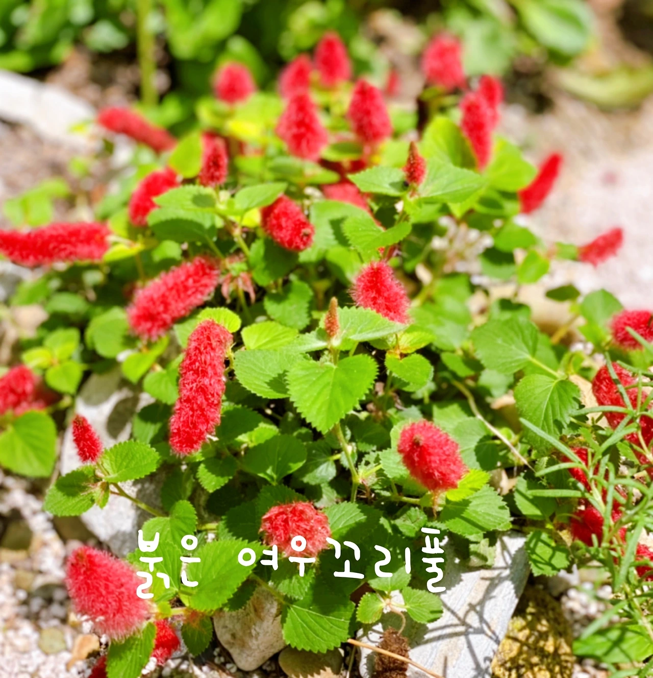 붉은여우꼬리 풀이 뙤약볕에서 초록과 대비되어 빨갛게 빛난다. 지난해에 심었다가 실패한 식물이다. 가장 주된 원인은 과습이었다. 정말 물 많은 것을 싫어하는 식물이다. 그래서 물이 잘 빠지는 곳에 마사토를 많이 해서 심고 돌자갈들로 빨간 털 부분을 받혀 줬다. 땅이나 물에 닿지 않게 하기 위함이다. 몇 달째 아주 잘 자라고 있다. 내년에는 여우꼬리를 더 심어야겠다.