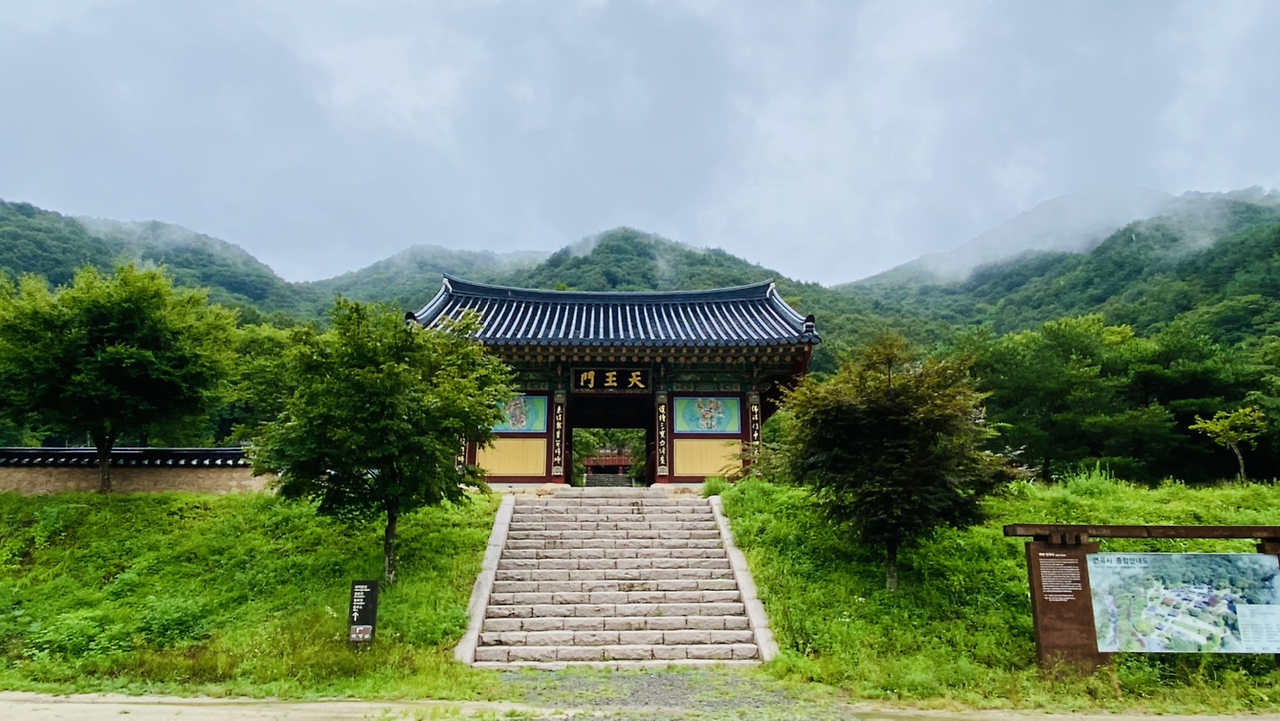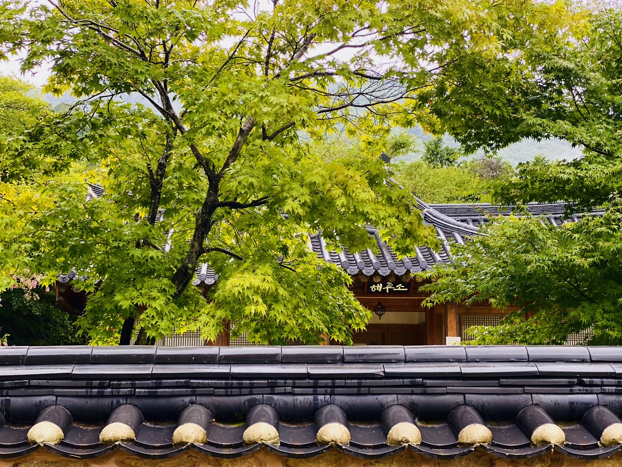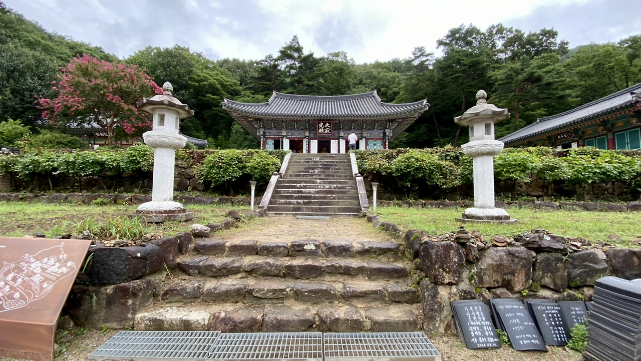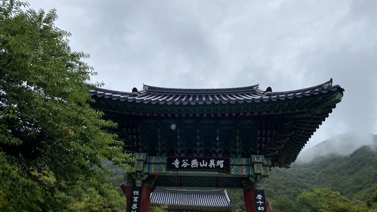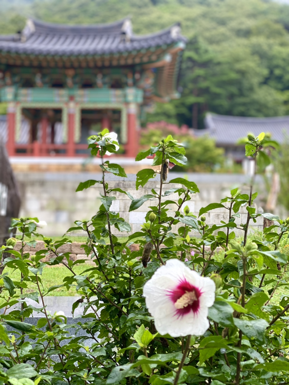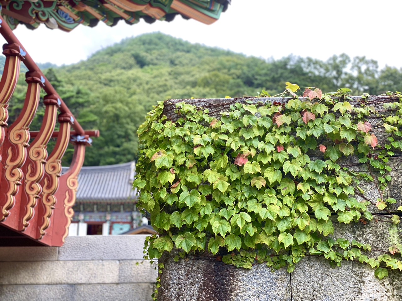 옆의 템플 스테이를 알리는 현대적인 이 작은 건축물은 조금 어울리지 않았다. 프레임에 들어오는 완벽한 건축물에서 지우고 싶은 부분이다.