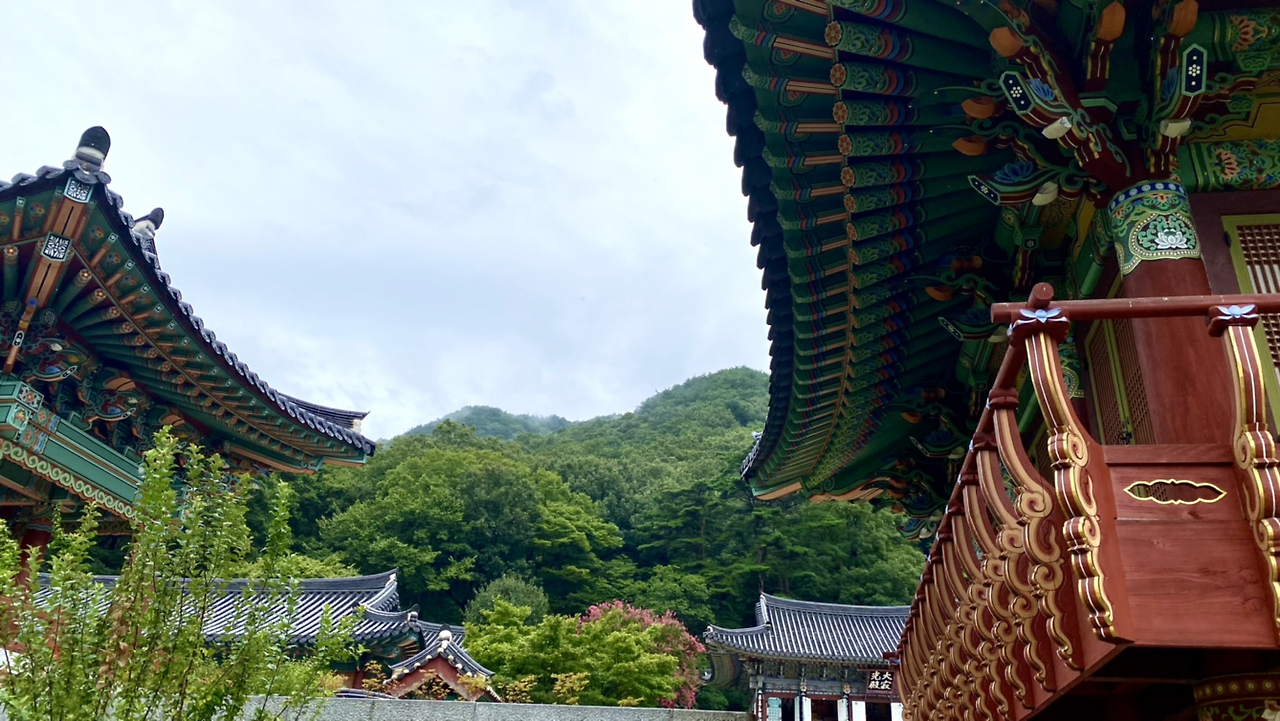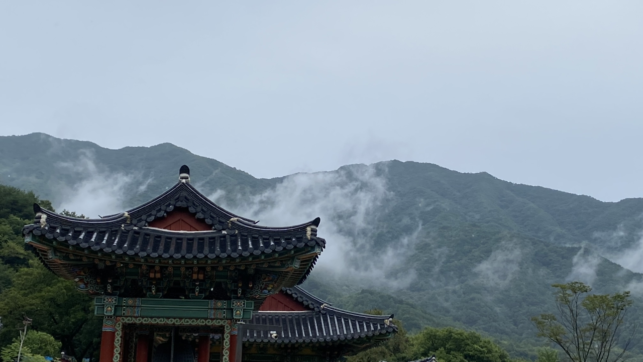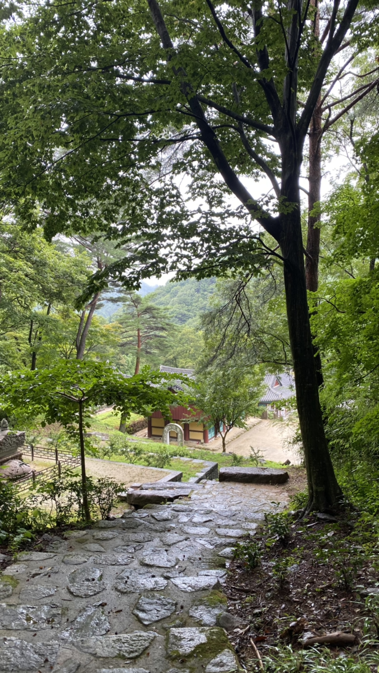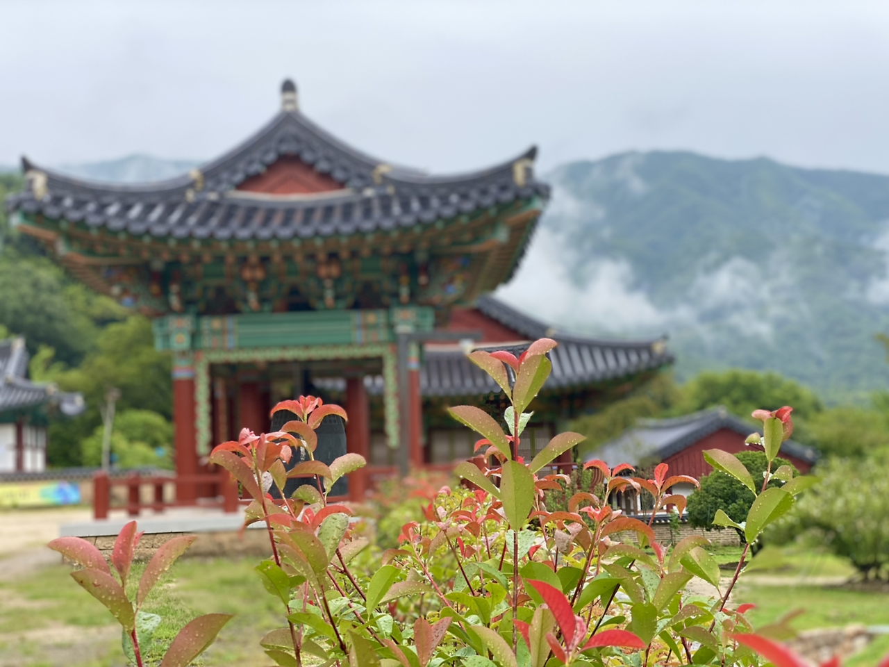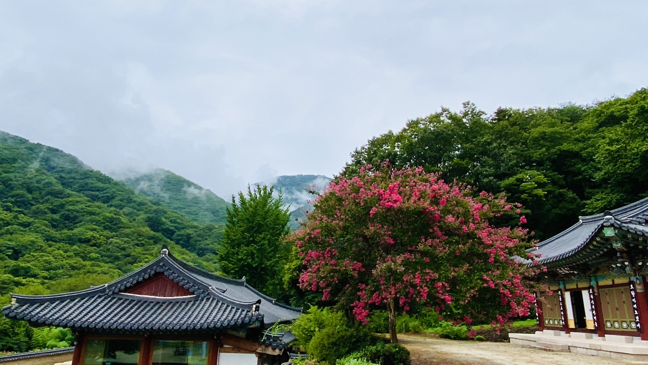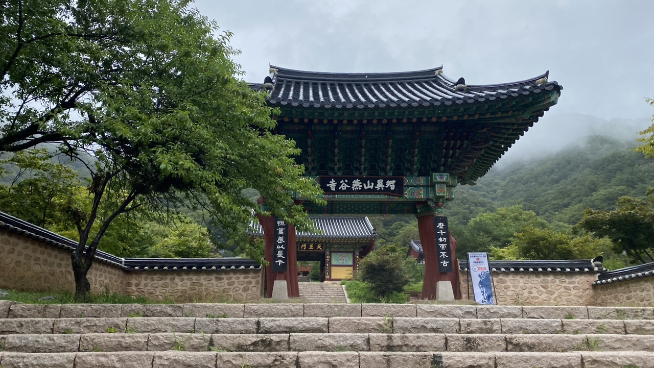 옆의 템플 스테이를 알리는 현대적인 이 작은 건축물은 조금 어울리지 않았다. 프레임에 들어오는 완벽한 건축물에서 지우고 싶은 부분이다.