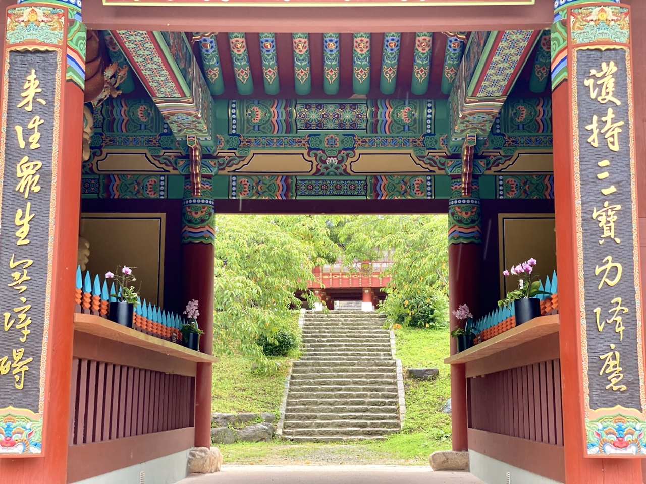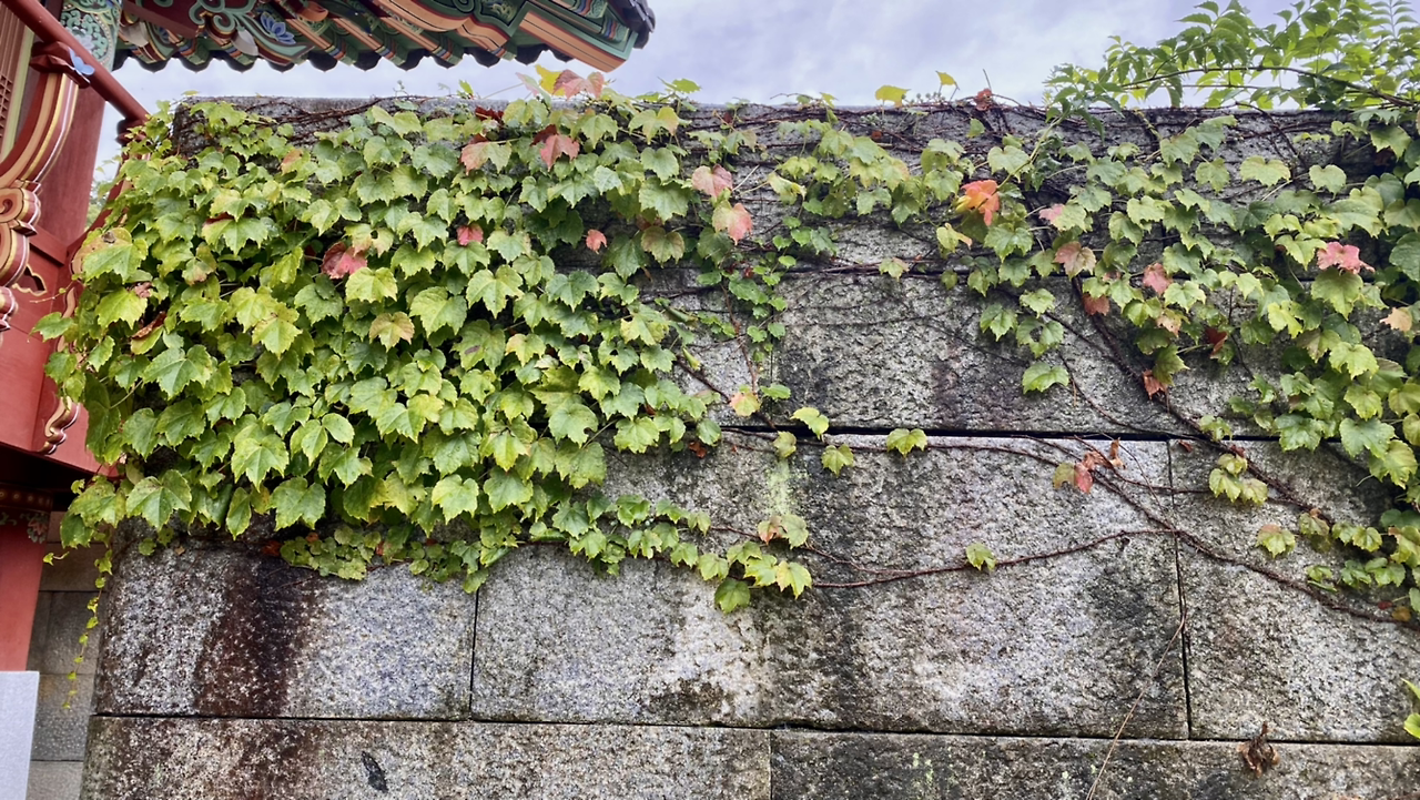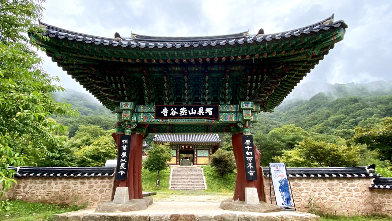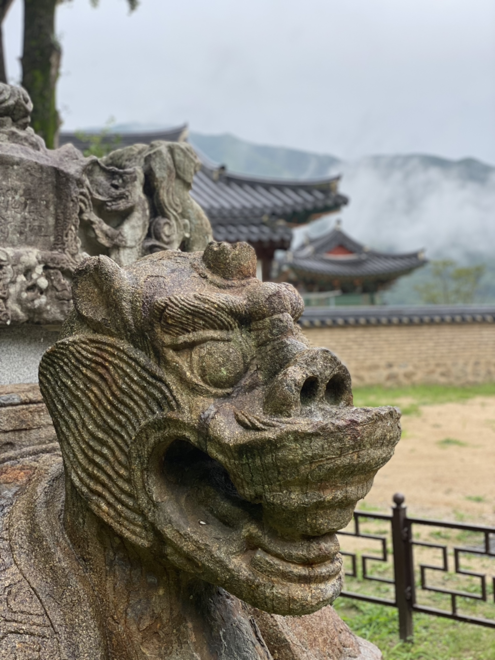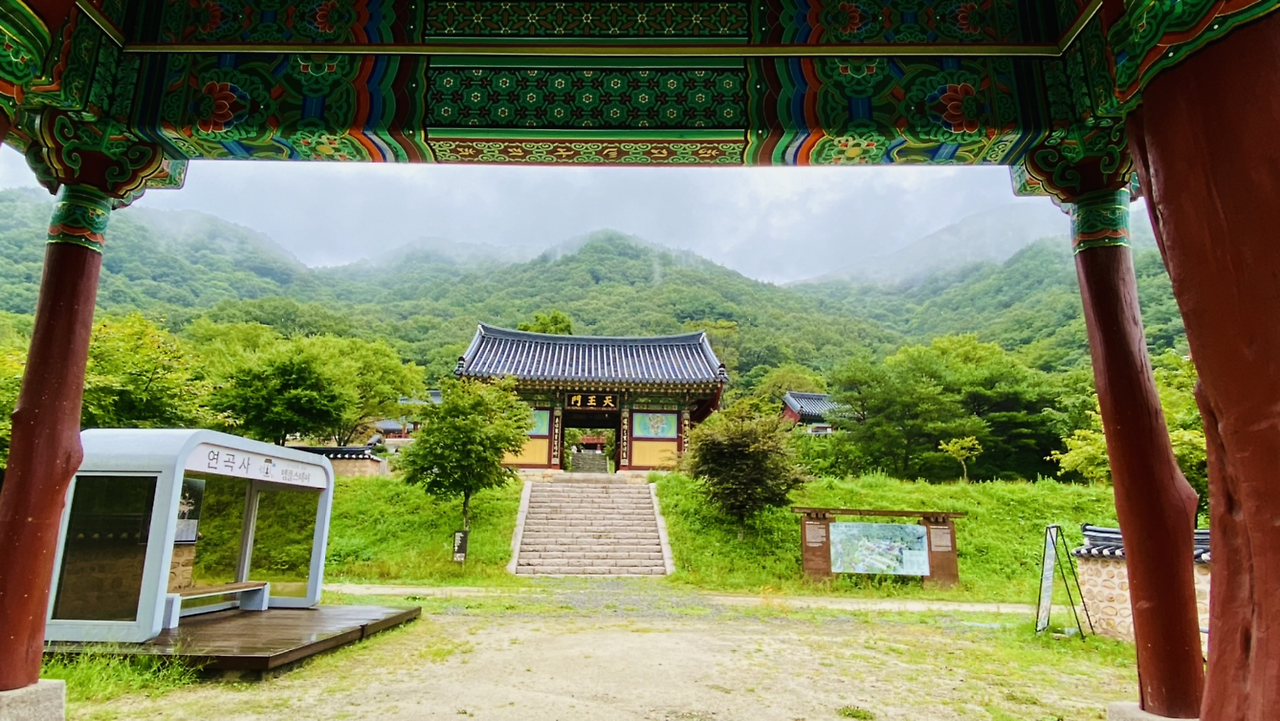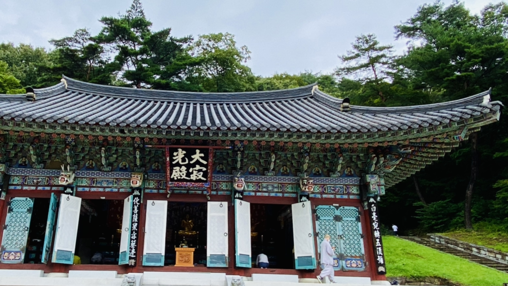 옆의 템플 스테이를 알리는 현대적인 이 작은 건축물은 조금 어울리지 않았다. 프레임에 들어오는 완벽한 건축물에서 지우고 싶은 부분이다.