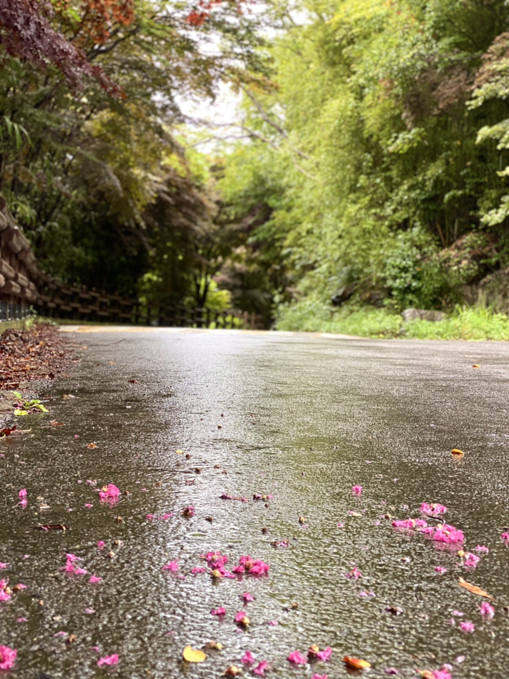 가로수 아래에 떨어진 배롱나무 꽃이 여름이 가고 있음을 알린다.