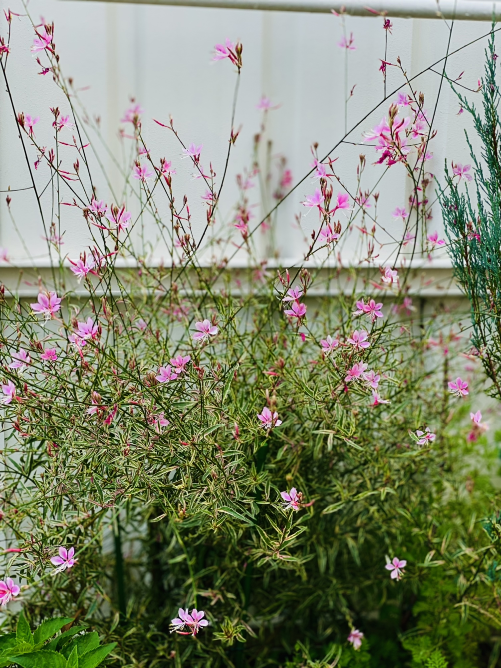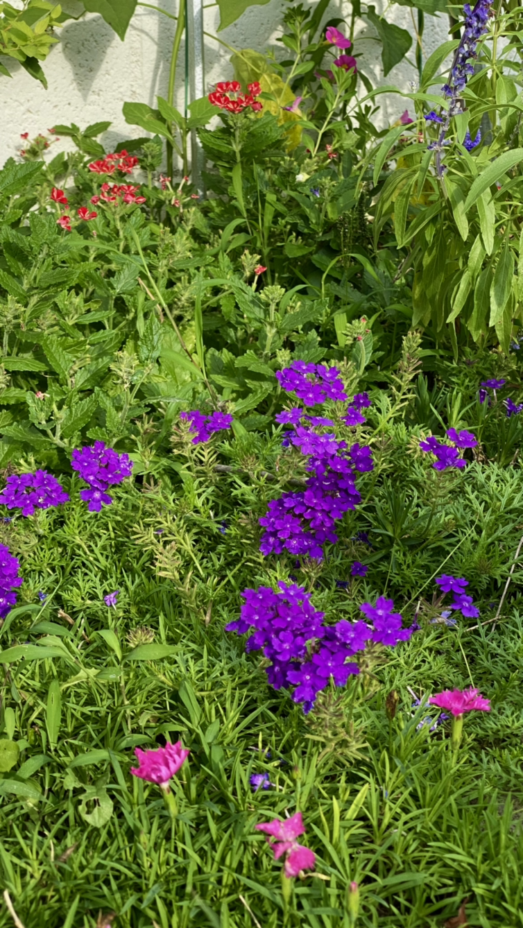 여름에는 꽃 백일홍, 나무 백일홍(배롱나무), 바늘꽃, 능소화, 노인장대(서양 여뀌), 솔잎 도라지, 숙근 버베나 등의 끈질긴 생명력을 자랑하는 몇 종류의 꽃들만 심고 가꾼다. 그렇다고 봄에 피었던 꽃들을 다 잘라버릴 수 없어서 화단은 조금 산만한 느낌이 든다.