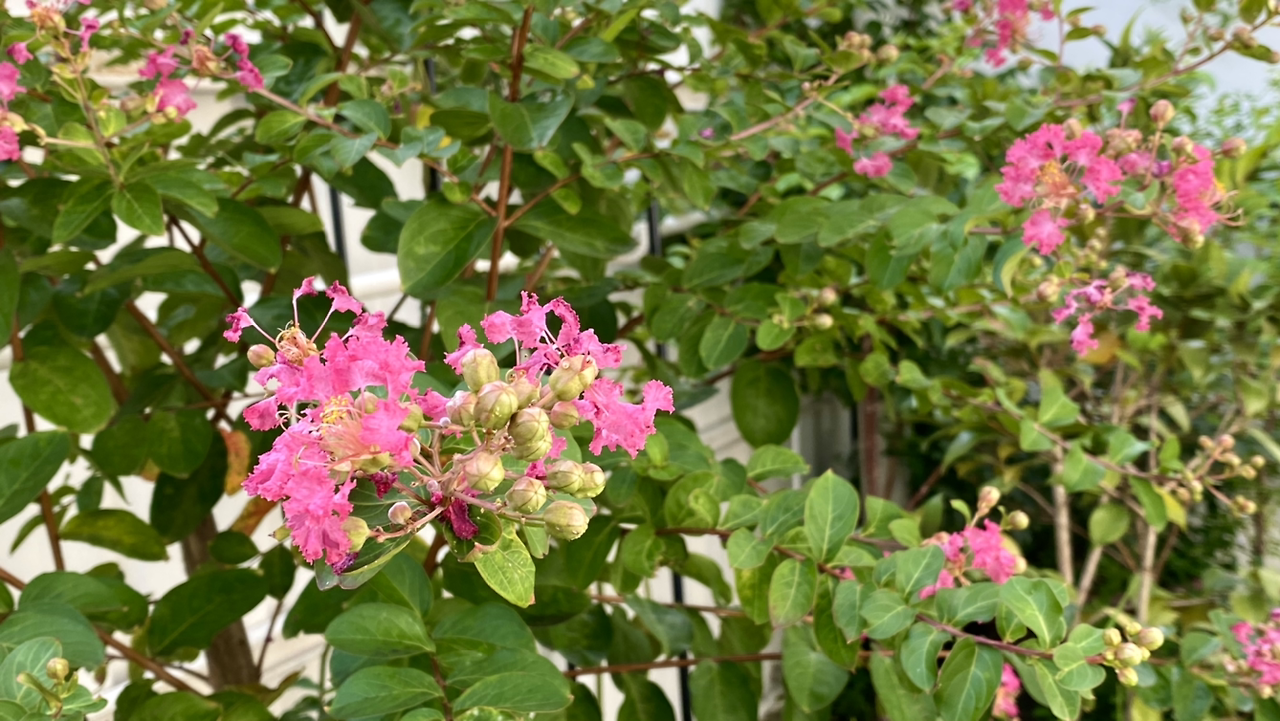 그 와중에도 배롱나무(꽃 백일홍) 두 그루가 동쪽과 서쪽 화단에서 여전히 아직은 여름이라는 사실을 확실히 알려준다. 나의 친구는 배롱나무를 떠올리면 덥다고 한다. 한여름에 피는 꽃이라서 그런다.