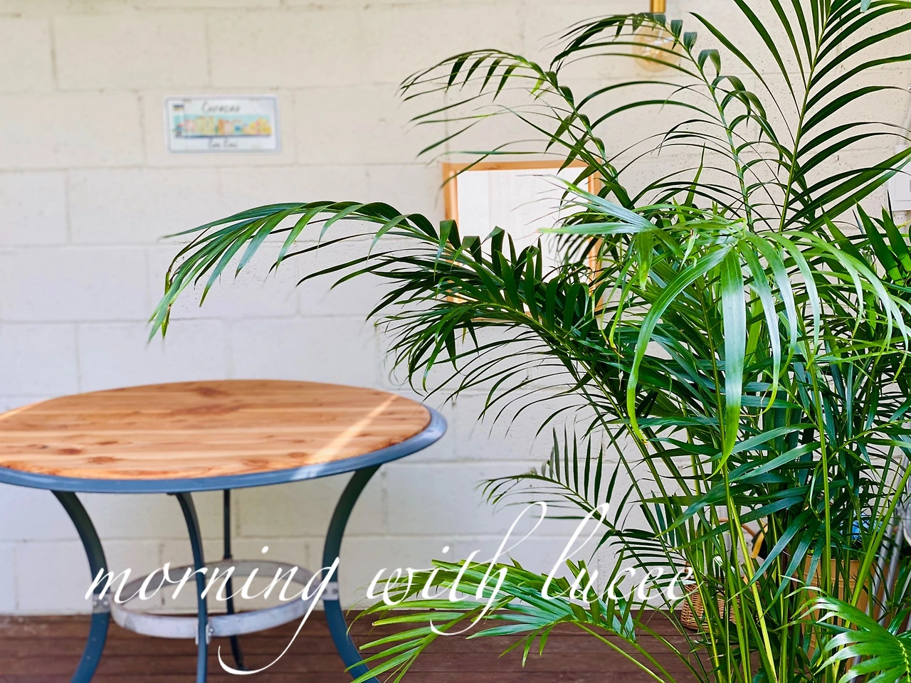 썬룸을 정리하고 아레카 야자를 놓았다. 썬룸의 테이블은 남편이 어디서 얻은 테이블이다. 그 위에 나무를 덧 대어 리모델링한 것으로 아주 마음에 쏙 든다.
