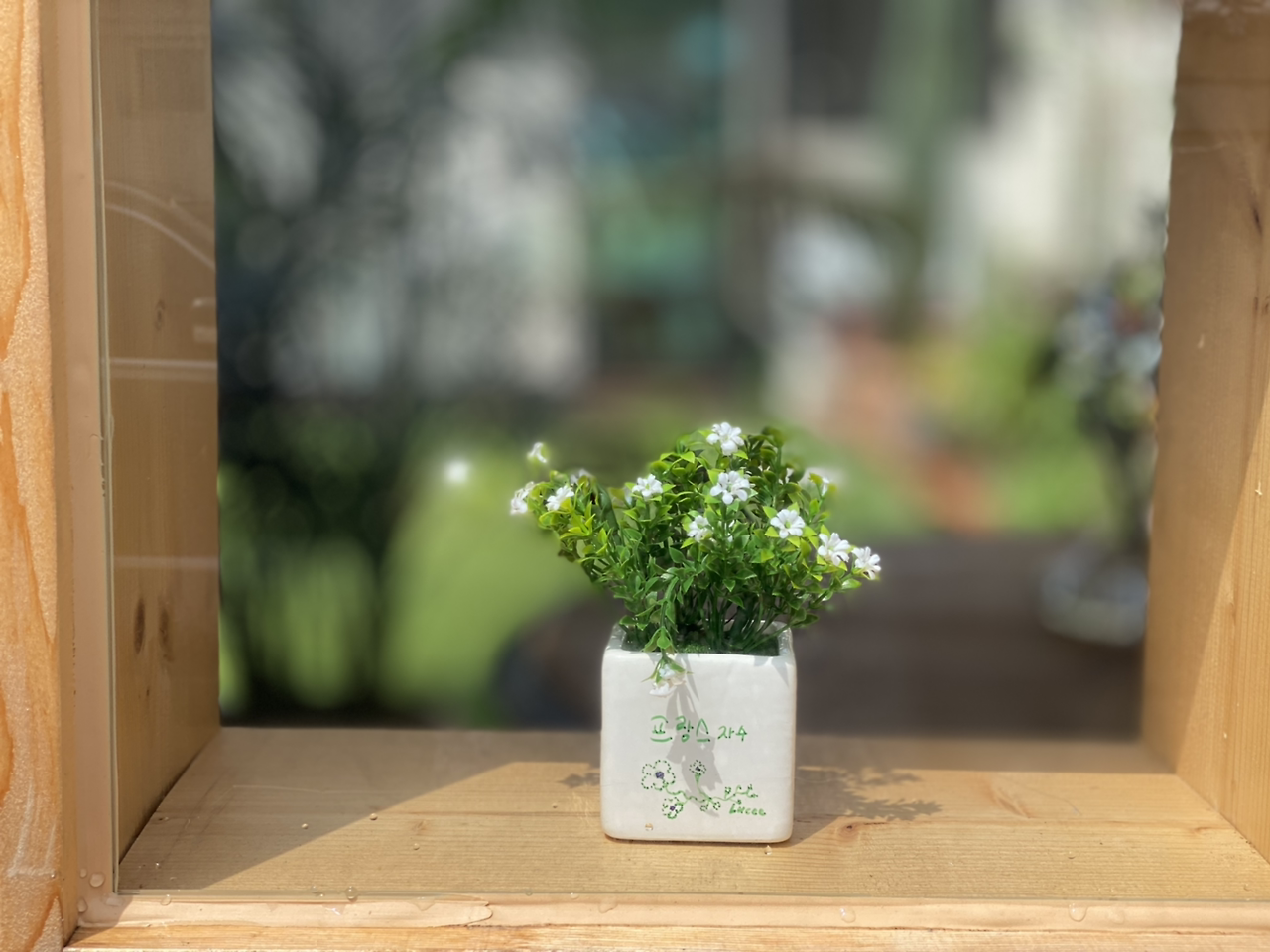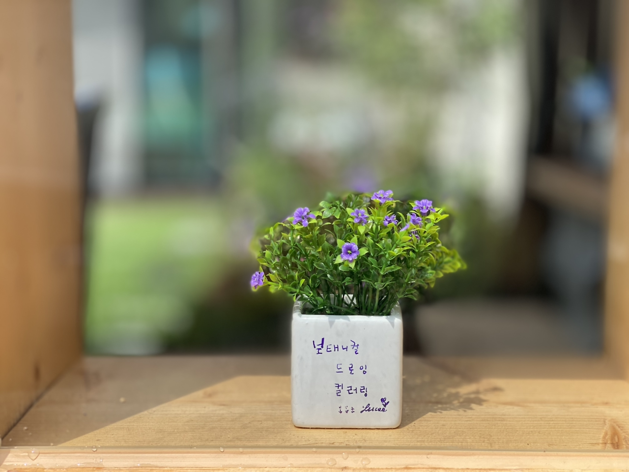 다 00에서 2천 원에 산 네모 조화 인테리어 소품 두 개에 글씨를 써서 썬룸 창 쪽에 올려놓았다.