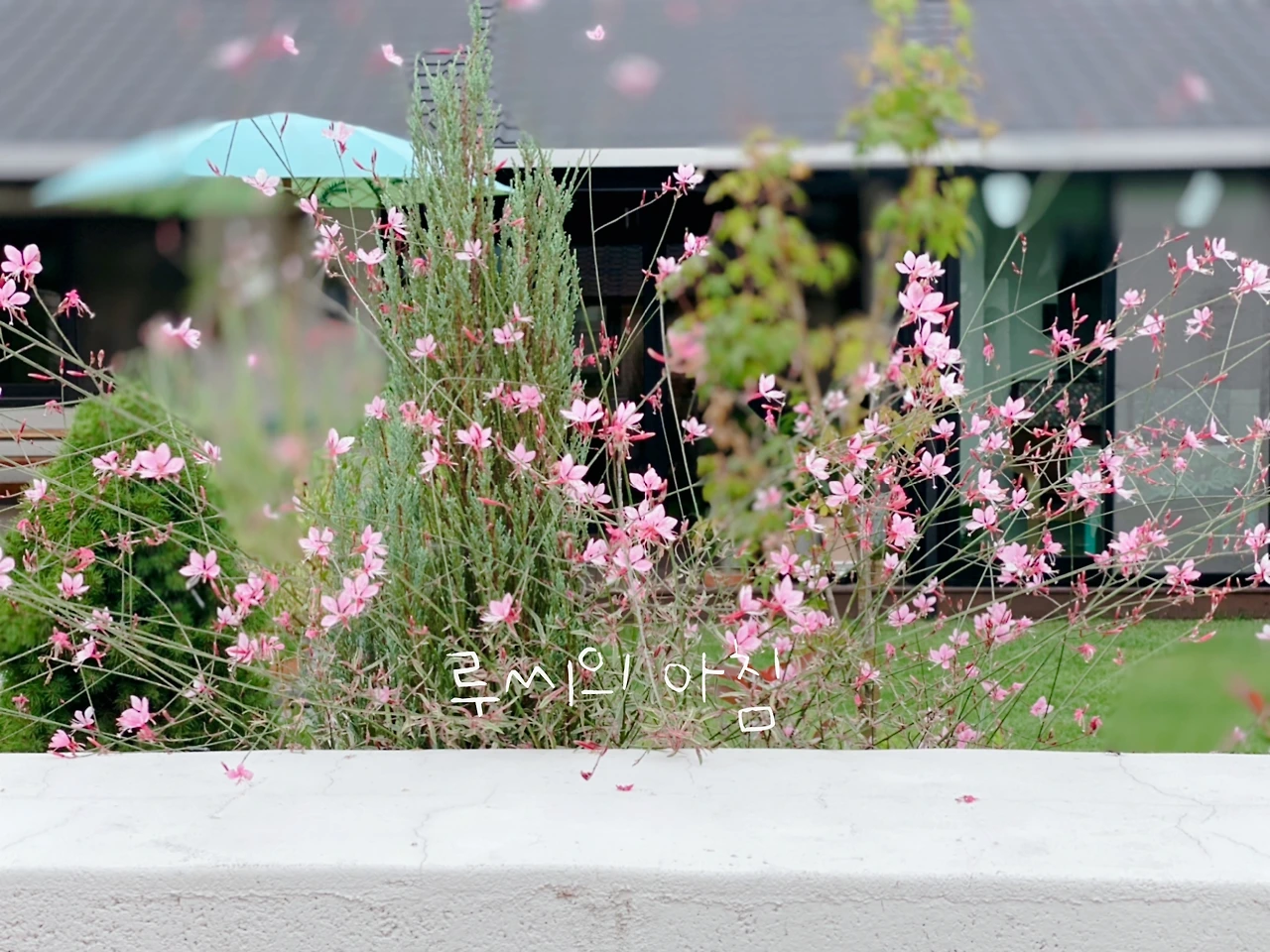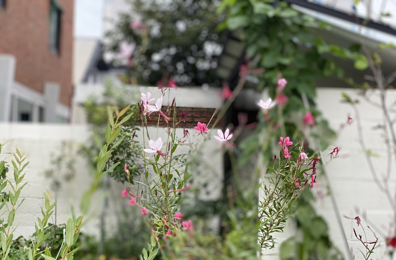 아직 여름의 꽃이 지지 않은 나의 정원에서 환한 핑크 바늘꽃이 지나는 이들에게 인기다.