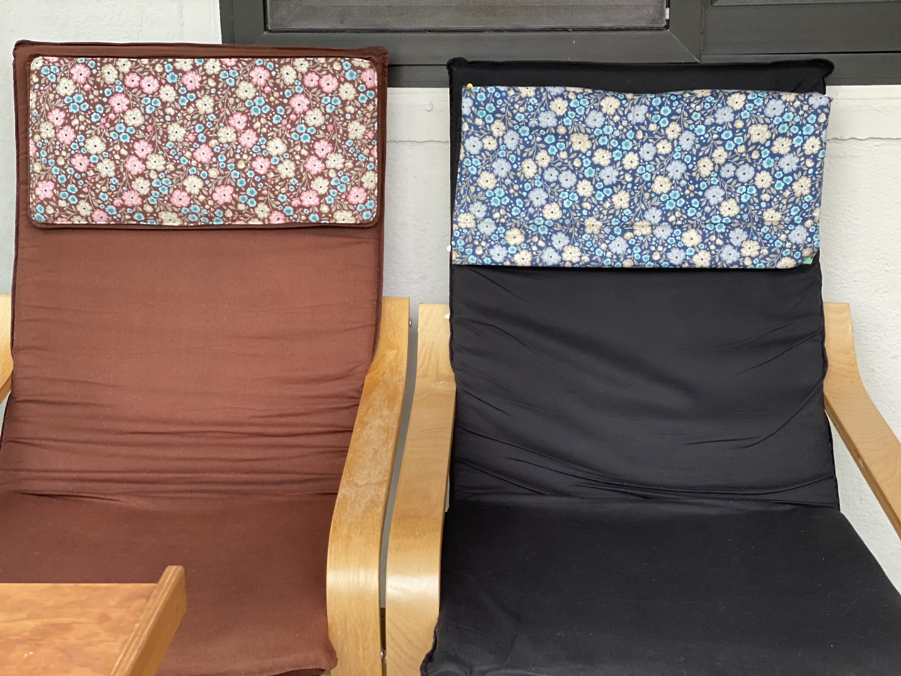 두 개의 의자 역시 버릴 지경의 것을 리폼하여 쓰려고 한다. 오른쪽 의자의 푸른 꽃 천은 현재 핀만 꽂은 상태다. 오늘은 바느질을 완성할 예정이다.