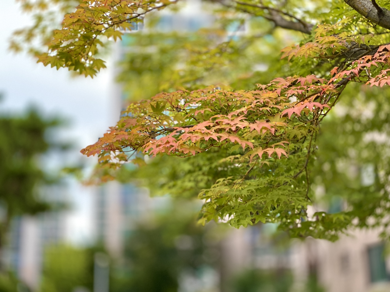 퇴근해서 혼자 놀다가 아파트에 돌아온다. 우리 아파트는 오래되었다. 30년 된 아파트의 장점은 나무가 울창하다는 점이다. 우리 아파트에서 아래 사진의 단풍나무는 씨앗이 떨어져 자란 아기에 해당된다.