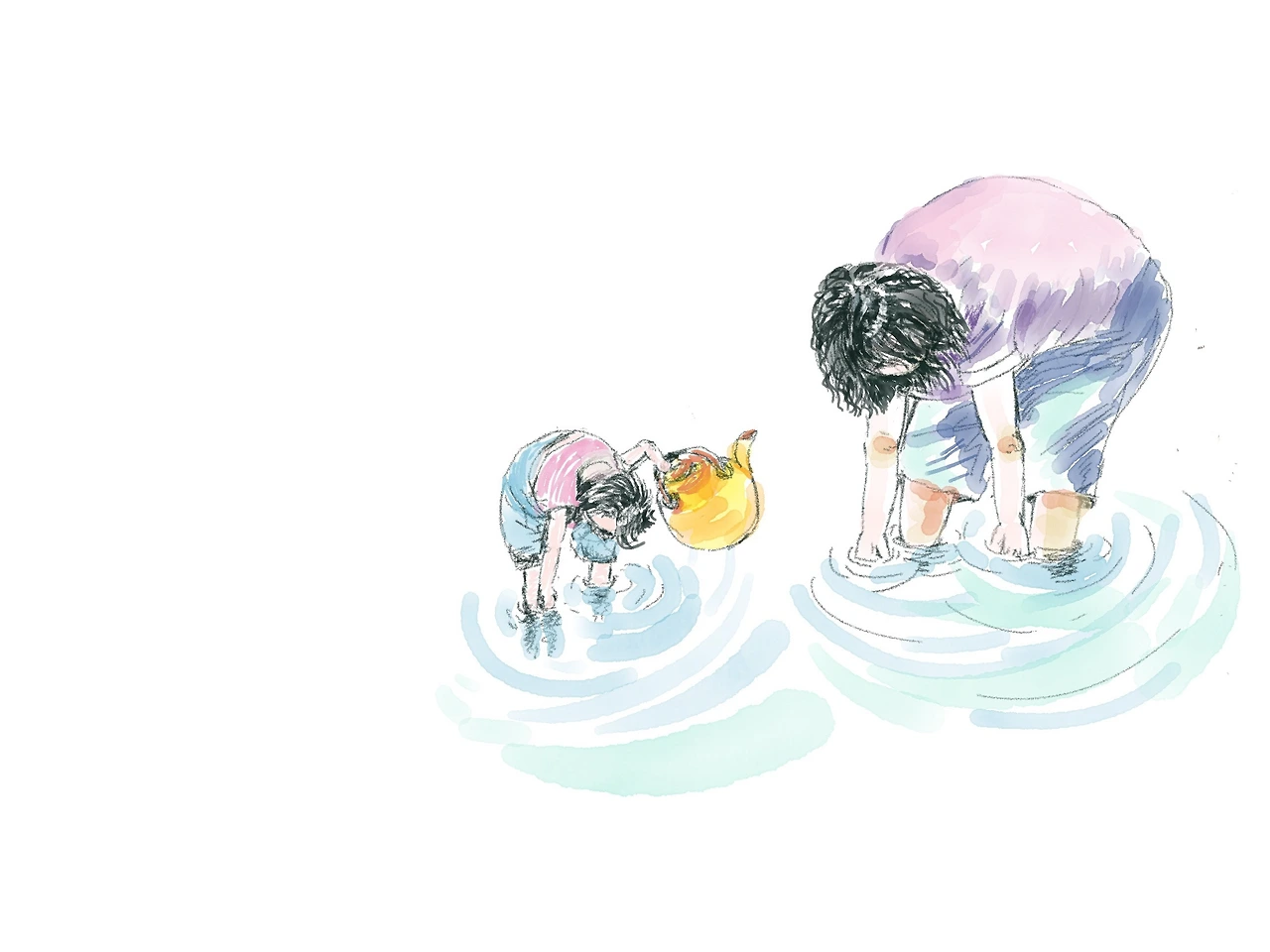 천방지축 어린 나는 엄마의 일과가 얼른 끝나기만을 기다리다가 엄마가 “ 그래, 이제 가자, 가!” 하시면 엄마에게 대롱대롱 매달려 노란 주전자를 들고 학교 앞 시냇가로 향했다.