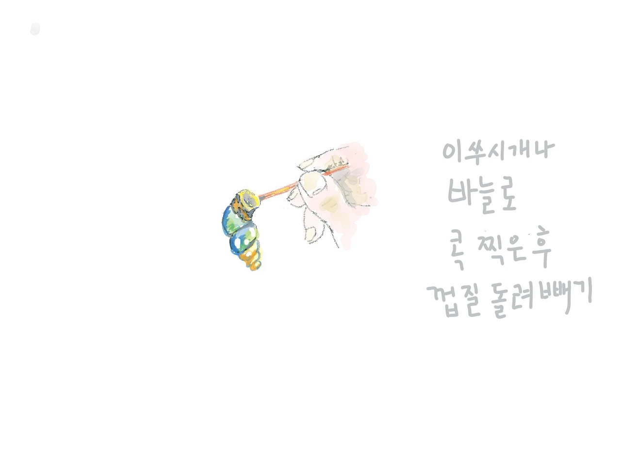 그렇게 잡은 다슬기를 모아들고 집에 오면 된장과 마늘을 푼 물에 다슬기를 삶아 여덟 식구가 둘러앉아서 다슬기를 먹었다. 바늘로 콕 찍어 알갱이가 잡히면 다슬기 껍질을 돌리면서 쏙 빼준다. 그러면 오동통한 알갱이가 쭈욱 따라 나오게 되는데 고소한 맛이 일품이었다.