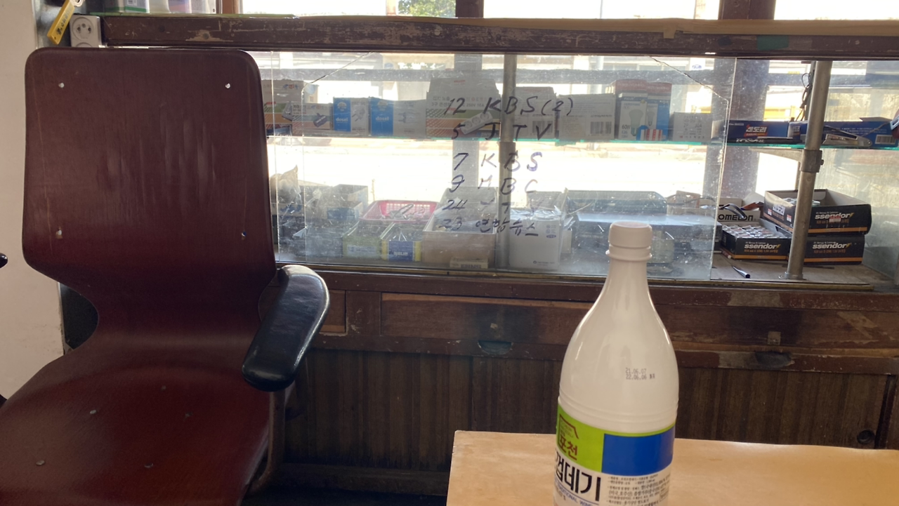 버스를 놓칠세라 부랴부랴 아래로 내려갔다. 정류장 바로 앞에 만물상 가게에는 할머님 한 분만 덩그러니 앉아계셨다. 여쭤보니 버스가 오려면 30분은 더 기다려야 한다. 더우니까 들어와 앉아서 선풍기라도 쐬라면서 의자를 권하신다. 가게를 둘러보니 정말 모든 것을 다 파는 것 같다. 그런데 음료나 아이스크림 같은 것은 없다. 내 것을 드렸다.