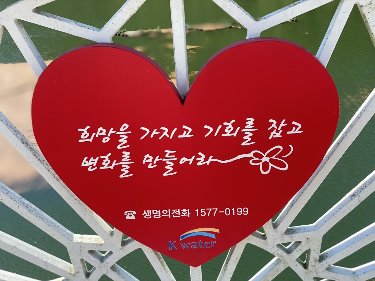 생명의 전화가 쓰여 있는 이유가 있을 것이다. 번지 점프할 만큼 높이가 있고, 물이 깊어 보인다. 살자, 살아야지. 이런 생명의 전화가 삶을 마감하고자 하는 이들에게 제발 도움이 되기를 기도한다.