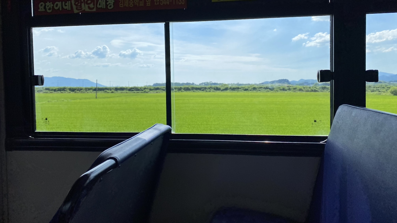 차창밖을 보니 부안 쌀이 유명한 이유를 알겠다. 너른 논의 벼가 익어갈 준비를 하고 있었다. 꼬불꼬불 비탈길도 갔다가 평지도 갔다가 이곳저곳 부안을 구경 중이다.