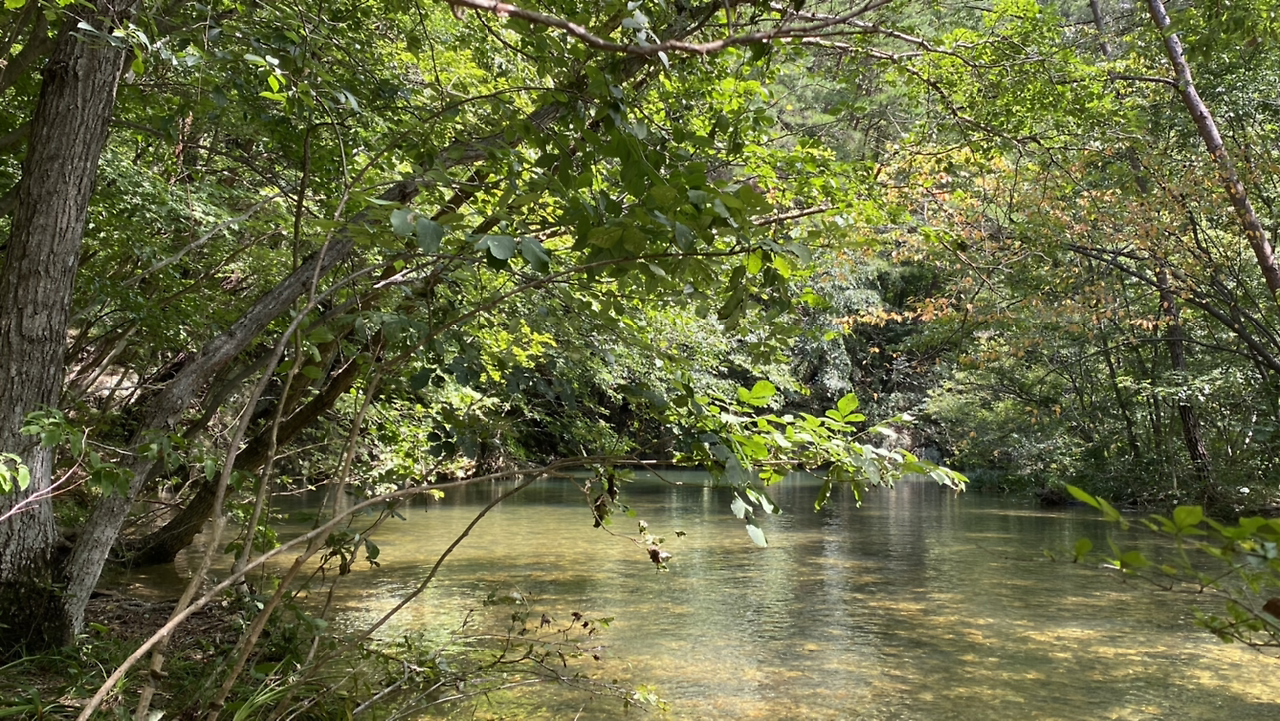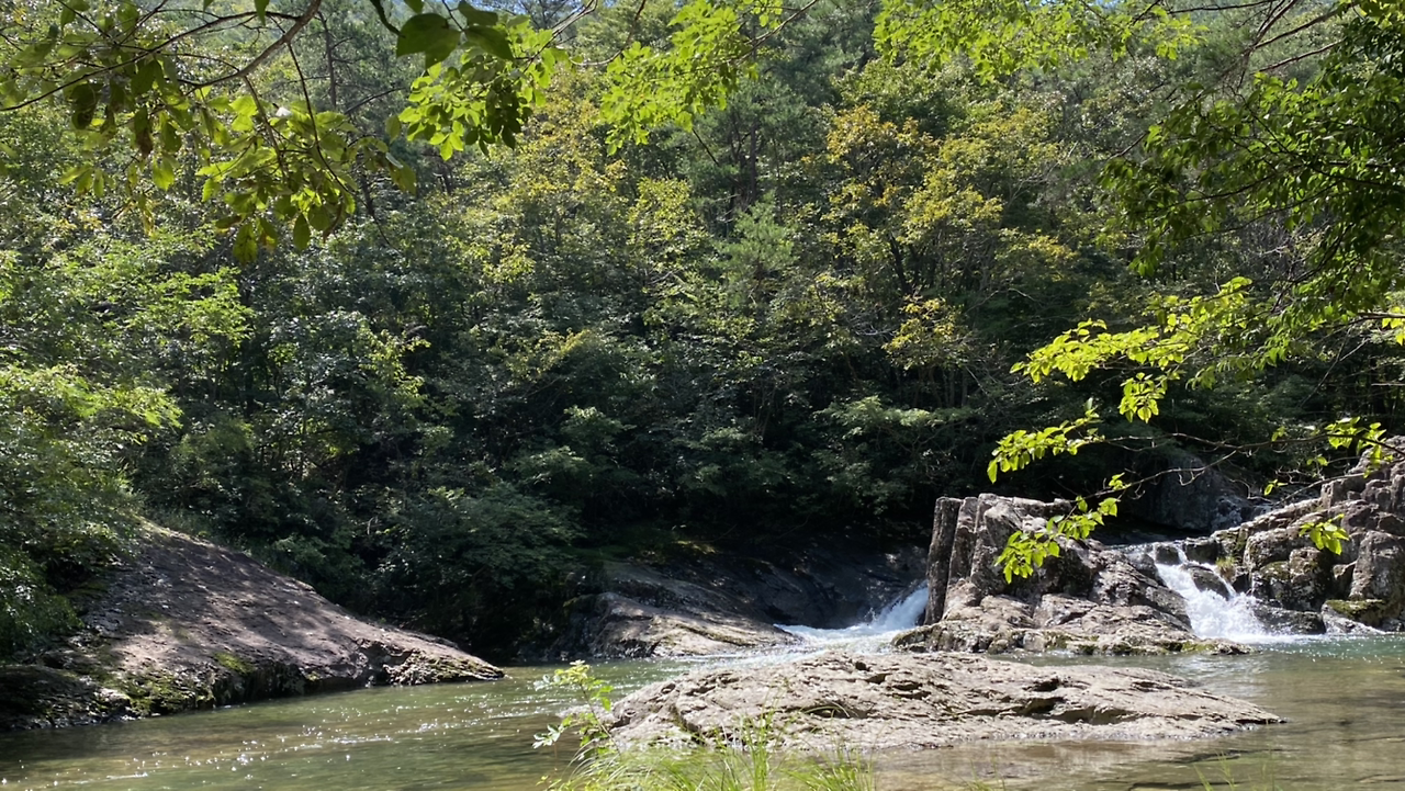 지난번에 배가 고팠지만 그럼에도 너무 아름다워 이곳에 서서 한참을 바라보았던 바로 그 장소다. 계곡을 따라 위로부터 내려온 나뭇가지나 잎들로 인해 물이 맑지 않다. 조금 실망했다.