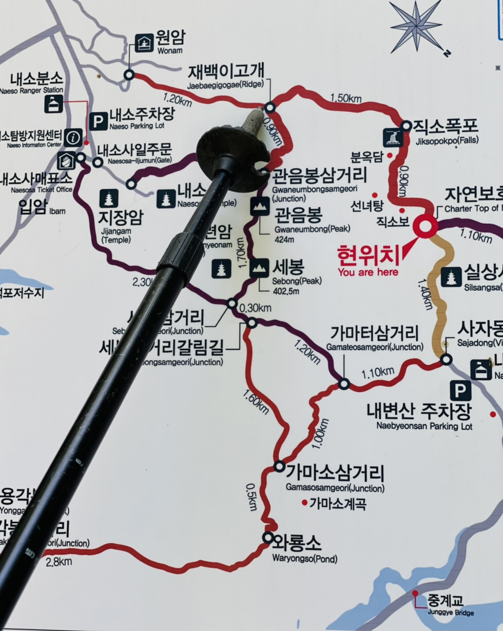 오늘은 조금 제정신인 상태라 그런지 산 머리에 있는 바위가 자꾸 눈에 띈다. 특이하고 예쁘다. 알고 보니 유명하다. 등산 코스 중에 들르는 곳이라고 한다. 바로 '쇠뿔바위'다. 아래에 관련 기사를 링크했다. 나는 도저히 오를 수 없을 듯하지만 언젠가 한번 '도전'해 볼까 하는 마음이 인다.