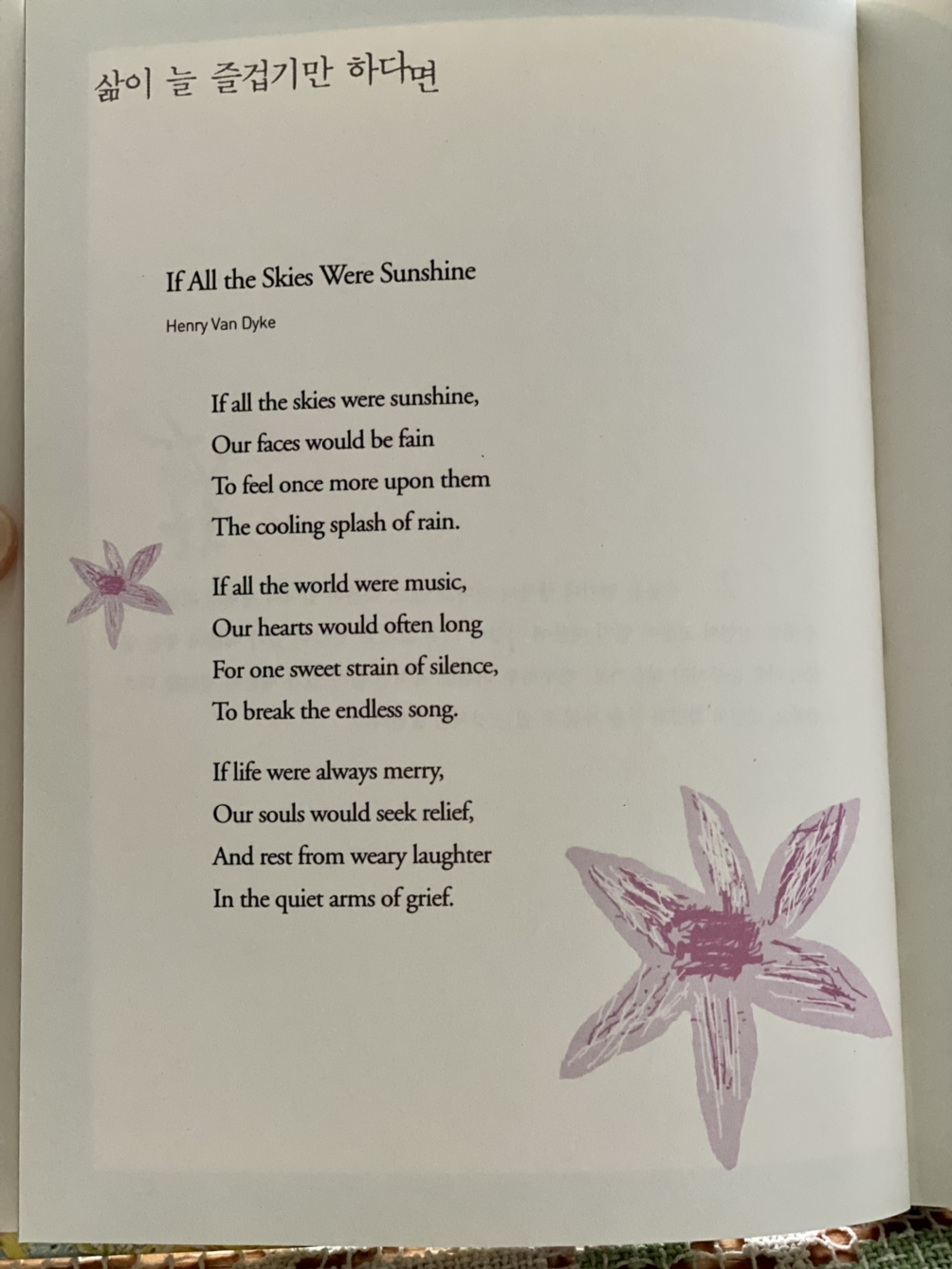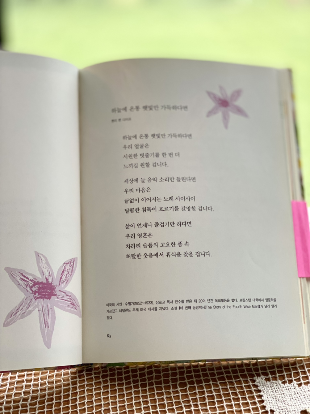 비는 멈추고, 풀벌레는 예쁘게 울고, 안락의자에 앉아 시 한 줄 읽으니...... 행복이 밀려온다.