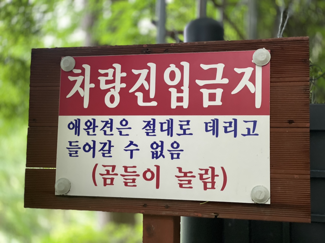 산속 깊이 올라가니 집들이 몇 채 있었다. 더욱 놀라운 사실은 '관광버스 주차 장소'라는 팻말이 있는 것이다. 아마 방문해 본 사람들이라면 내가 왜 놀라는지 알 것 같다. 여느 절들의 들어가는 입구 길과는 확실히 상이하다. 도로포장은 잘 되어 있다. 그럼에도 구불길에 거의 10도~15도 경사로 올라가야 한다.
