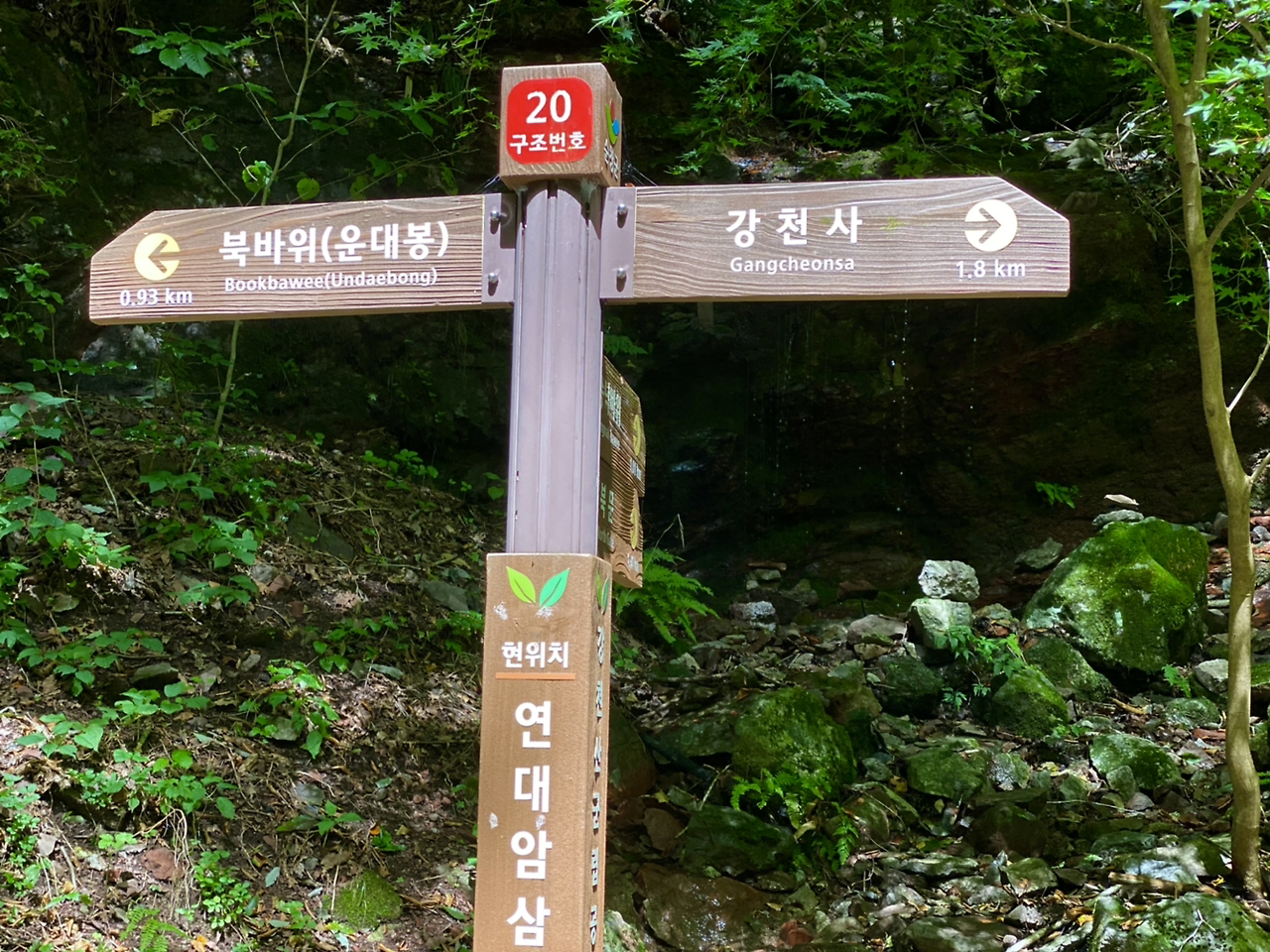 비가 많이 내렸는지 등산객이 거의 없어서인지 길이 잘 나 있지 않다. 습하여 바위 곳곳에 이끼가 끼었다. 커다란 바위를 끼고 뿌리를 뻗은 나무를 보노라니 아름다운 파괴로 유명한 캄보디아의 '따프롬 사원'이 생각난다.