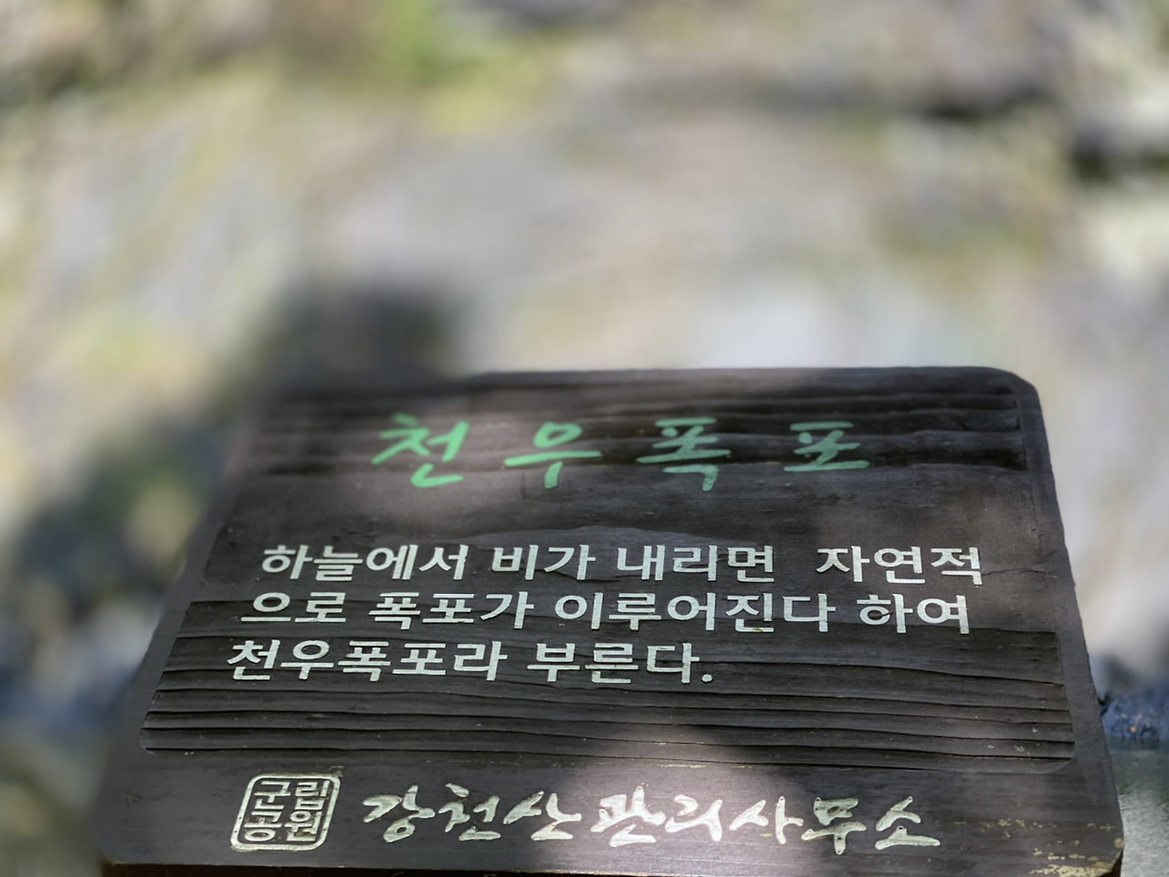 지난주에 비까지 내려서 곳곳에 폭포 줄기가 콸콸 흐른다. 아주 수심이 깊은 곳은 수영금지 푯말이 붙어 있다.
