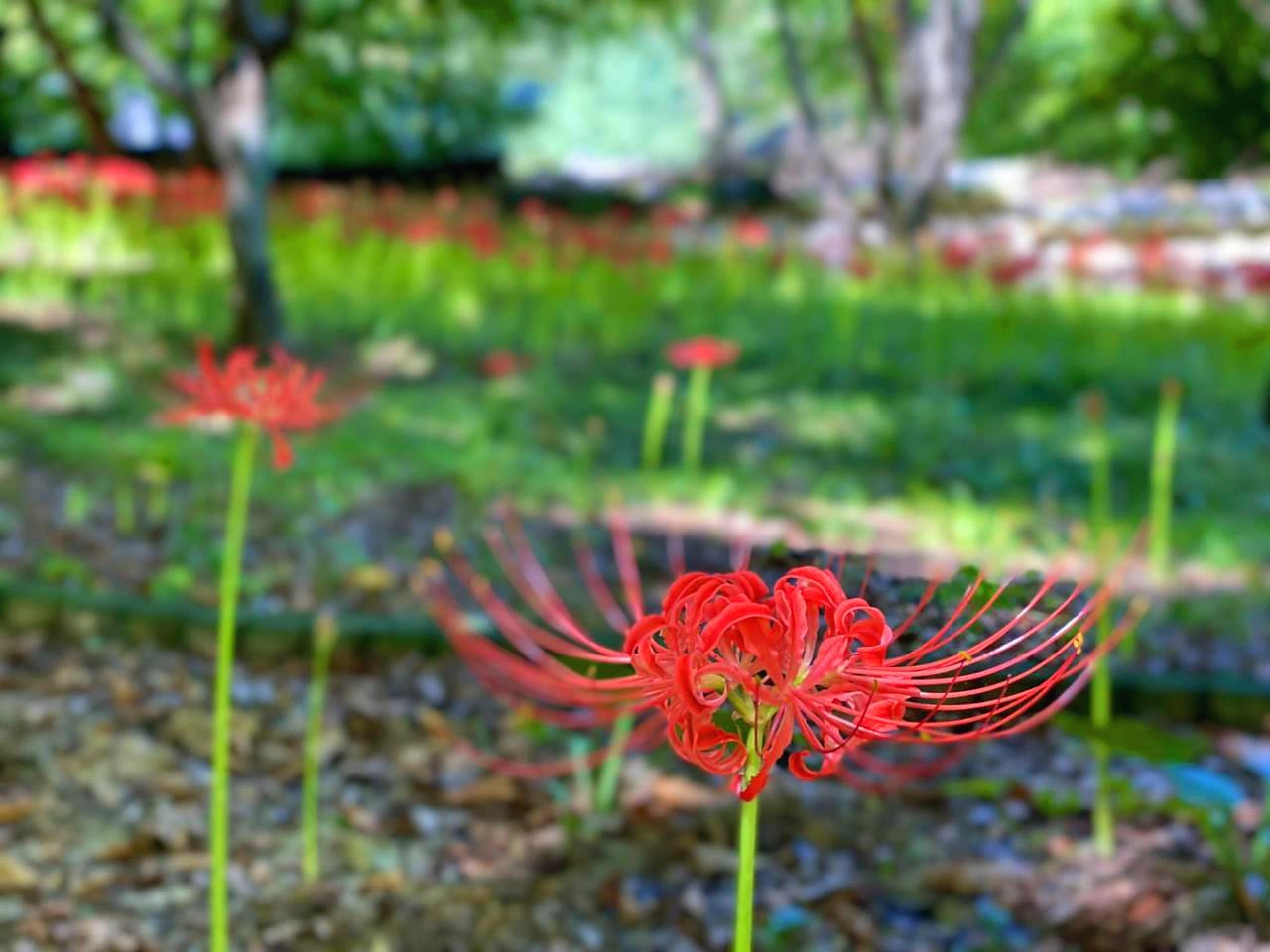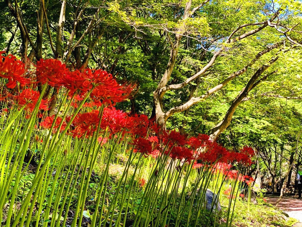 지금 고창 선운사의 꽃무릇이 한창일 텐데 생각하면서 걷다 보니 강천산에도 꽃무릇이 곳곳에 피었다.
