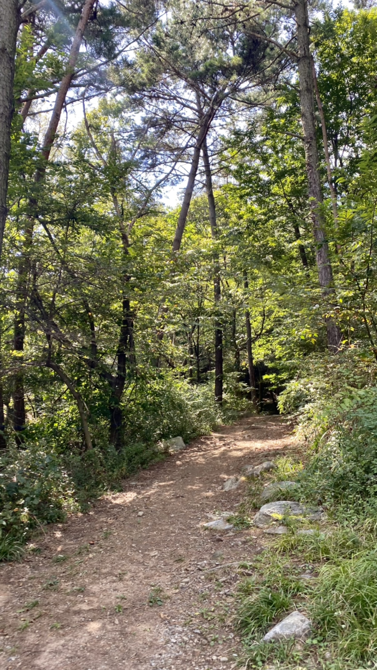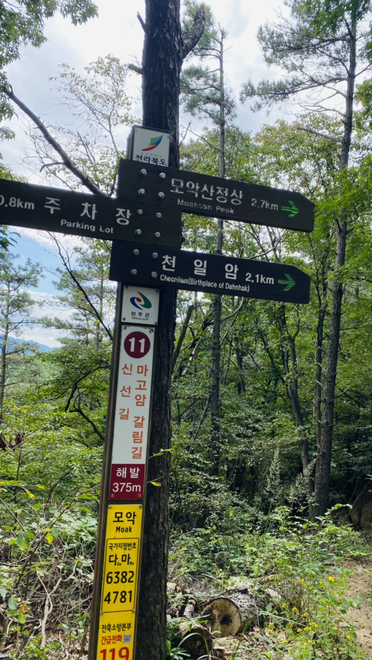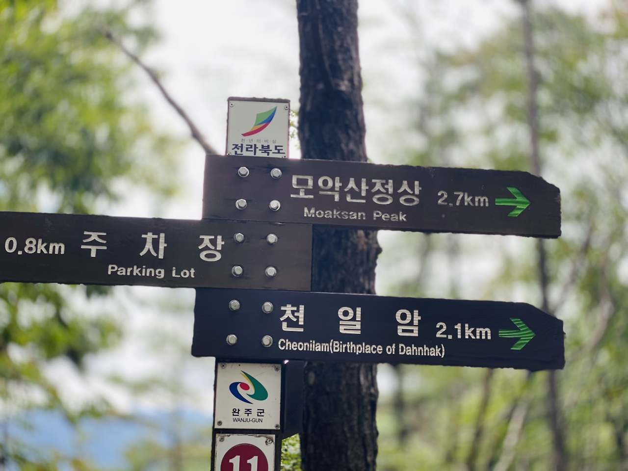 모악산은 여러 갈래길이 있다. 무릎이 신통치 않은 이들을 위해서는 가벼운 산책 겸 등산 코스가 있다. 먼저 구이 도립 미술관 앞 주차장에 주차를 한 후, 모악산 입구에서 왼편으로 걷는 길이 있다. 가벼운 산책로로 지압을 하면서 걷는 길이다.