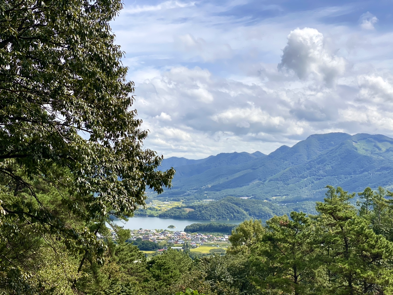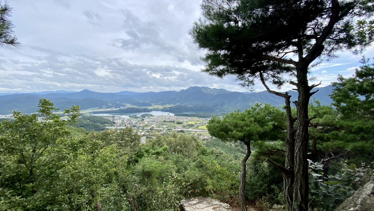 마고암에서 조금 산을 오르면 이정표가 나온다. 이때, 가벼운 산책을 원한 경우 바로 주차장 쪽으로 내려오면 된다. 주차장 쪽으로 내려오다 보면 도심이 한눈에 바라다 보이는 곳에 너른 바위가 있어 잠시 쉬기에 좋다.