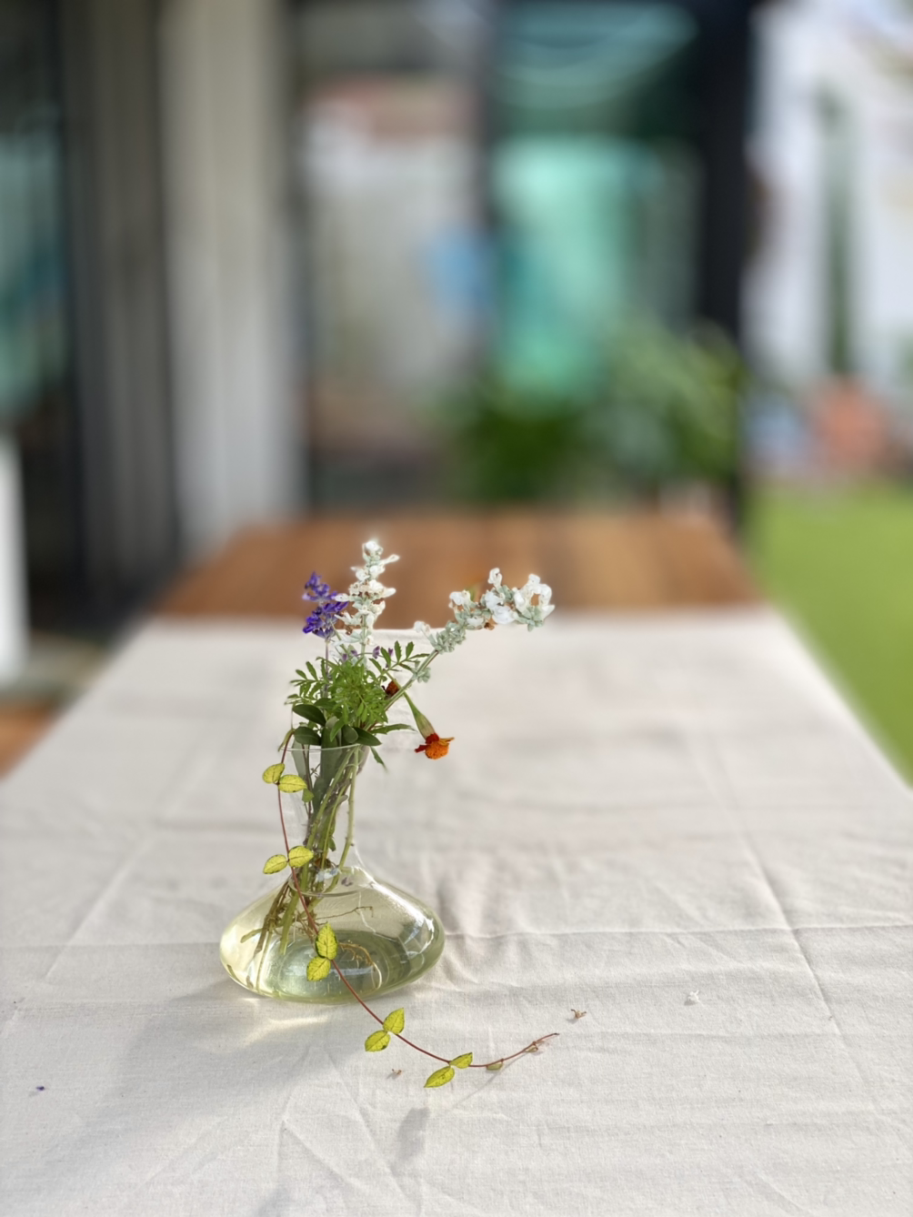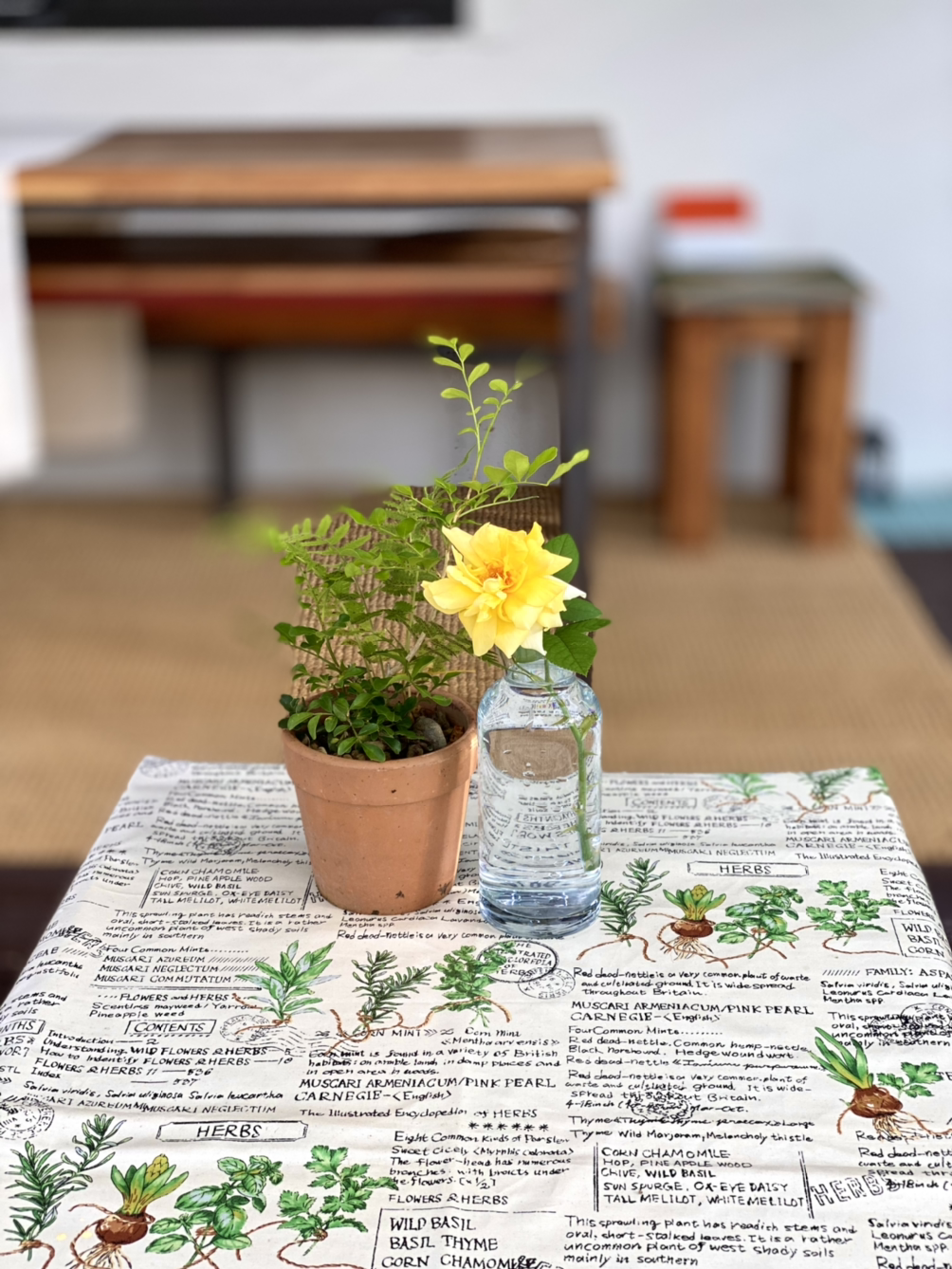탁자 위에 꽃병만 올려 주려다가 바람에 날아갈까 아니면 고양이가 올라갈까 염려되어 우선 화분 하나 함께 올린다.