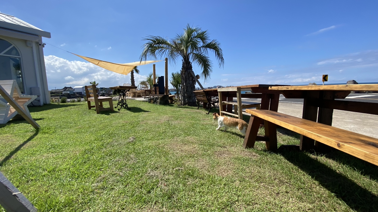 종려나무와 소철나무 그리고 푸른 바다가 있어 그냥 앉아 있어도 행복한 카페였다.