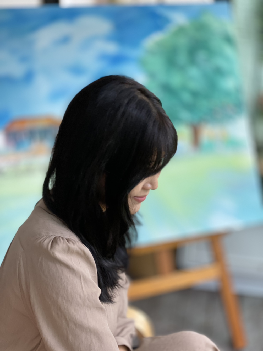 오늘의 모델은 나의 동료인데 너무나 밝고 명랑하며 예의범절을 잘 지키는 사랑스러운 아가씨다. 공간에 놀러 온 동료가 너무 좋아하니 나도 기분이 좋다. 동료를 보기만 해도 나의 기분이 업된다. 주변을 환하게 하는 친구다.