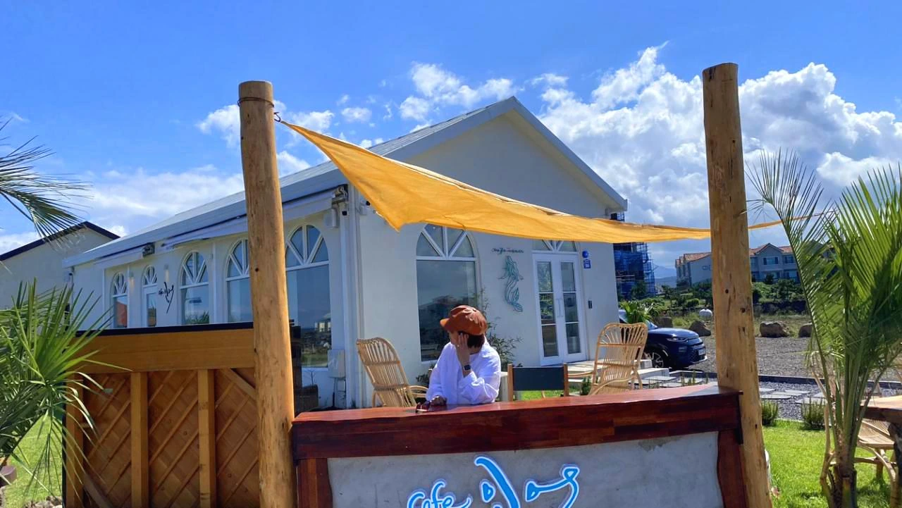 나의 공간 모닝과는 비교도 되지 않을 바다가 보이는 제주도 카페다. 카페 인어는 인어의 전설이 있는 곳이란다. 단독주택을 물려받아 단층으로 카페를 짓고 바로 옆에는 부모님께서 살고 계시는 집을 지어 드렸다고 한다. 사장님께서 친절하시다. 불과 1년도 안 된 카페라는데 위치 자체만으로도 기가 막힌 곳이며 높지 않은 단층이라서 편안함을 더한다.
