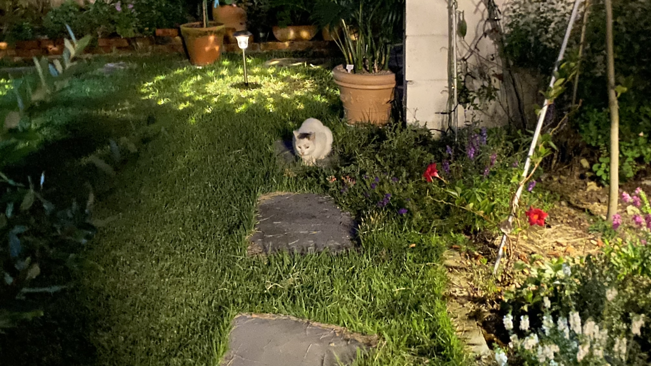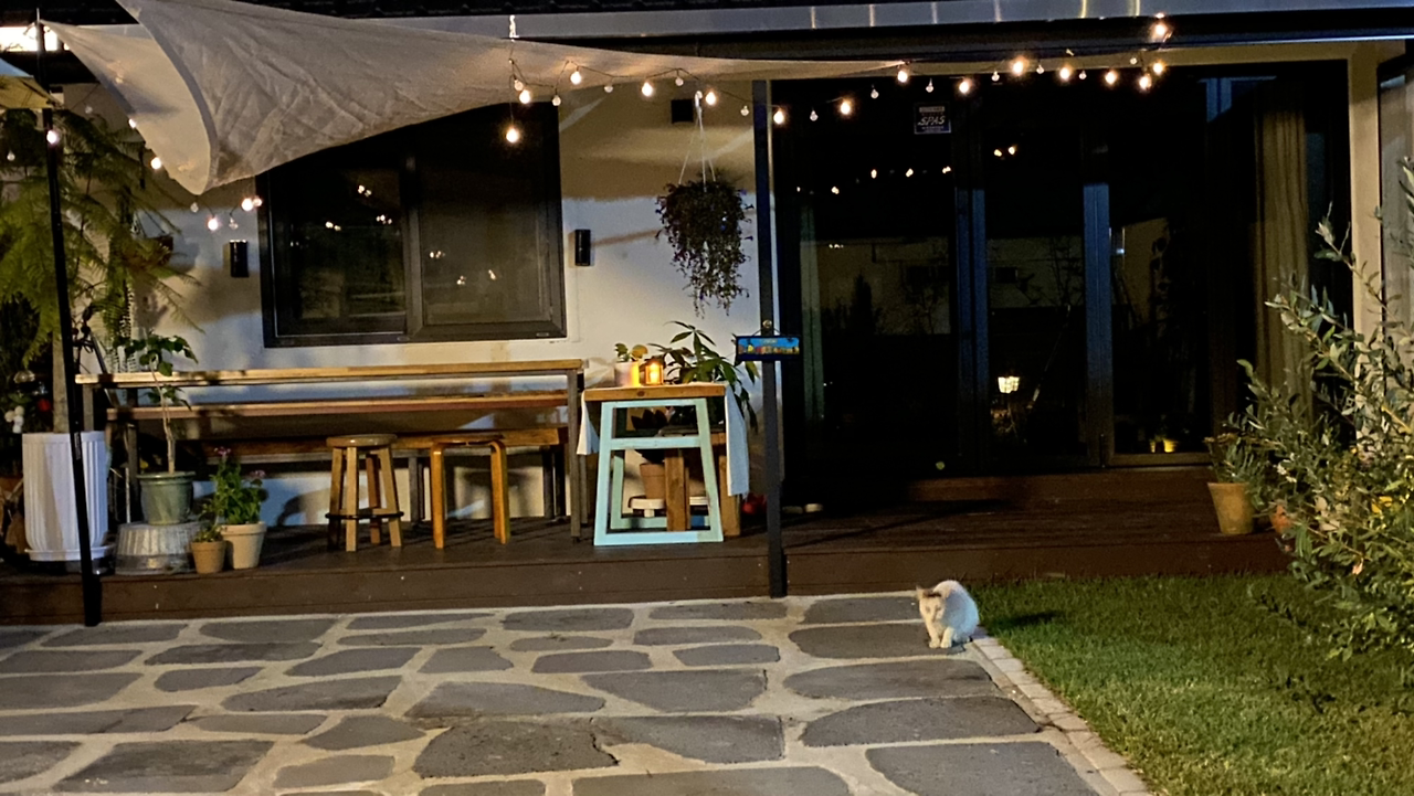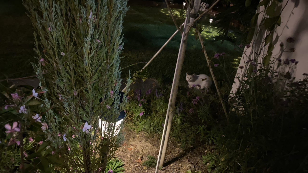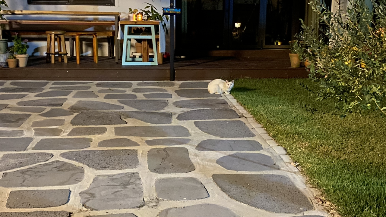 공간에 들르지 않아 밥을 주지 못한 어느 날 와 보니 두 군데에 실례를 범해 놓았다. 물론 인상파가 한 짓인지 알 수는 없다. 인상파의 소행은 아닌 듯하다. 다만, 인상파가 없는 사이 다른 길냥이가 공간을 점령했을지도 모르겠다. 점점이 원형으로 퍼지는 조명을 잔디에 해 놓으면 어지럼증으로 볼일을 보지 못할 수 있겠다는 생각이다. 효과가 있을는지는 잘 모르겠다. 구조물이 있는 곳에는 실례를 하지 않으니 기대해 보기로 한다.