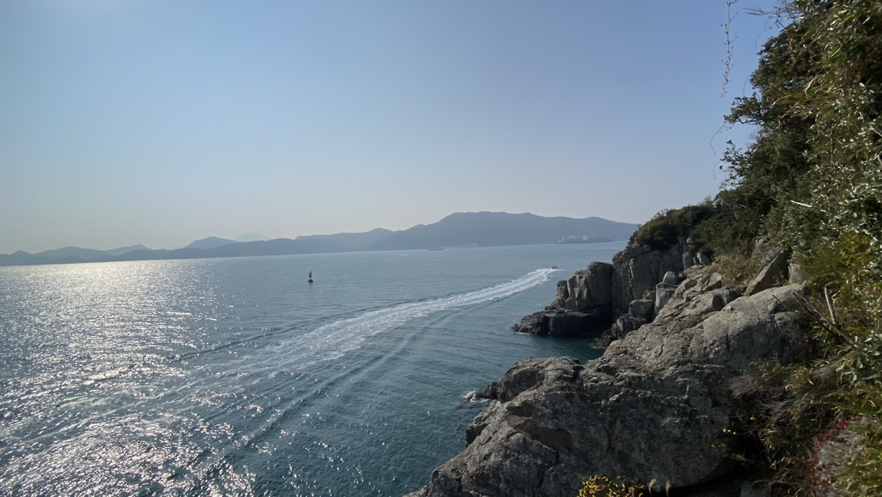 오솔길을 걷다 보면 어느 사이 탁 트인 바다가 나온다.