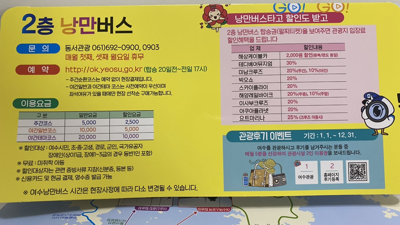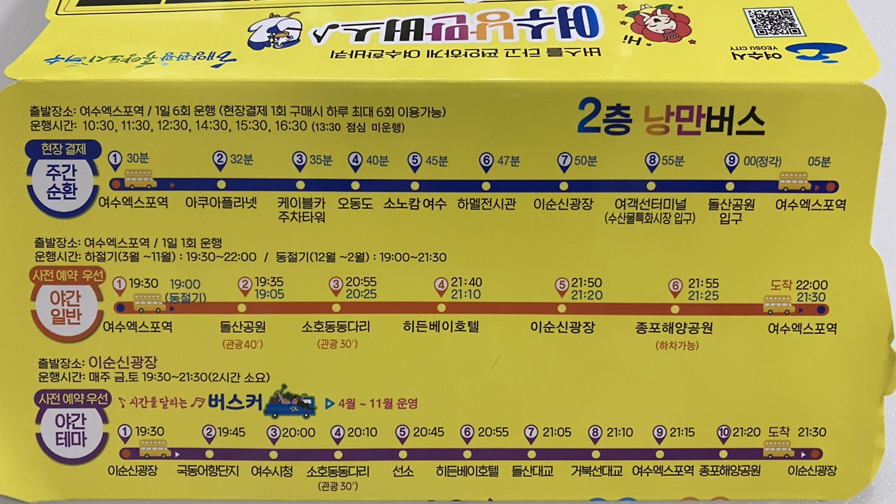 언젠가는 금오도에 꼭 가보리라 마음먹는다. 오늘은 그저 기차 타고 왔다는 것에 의의를 두기로 했다. 그런데 이층 버스가 있다. 5천 원 차비로 시내를 두루 돌아다닌다.