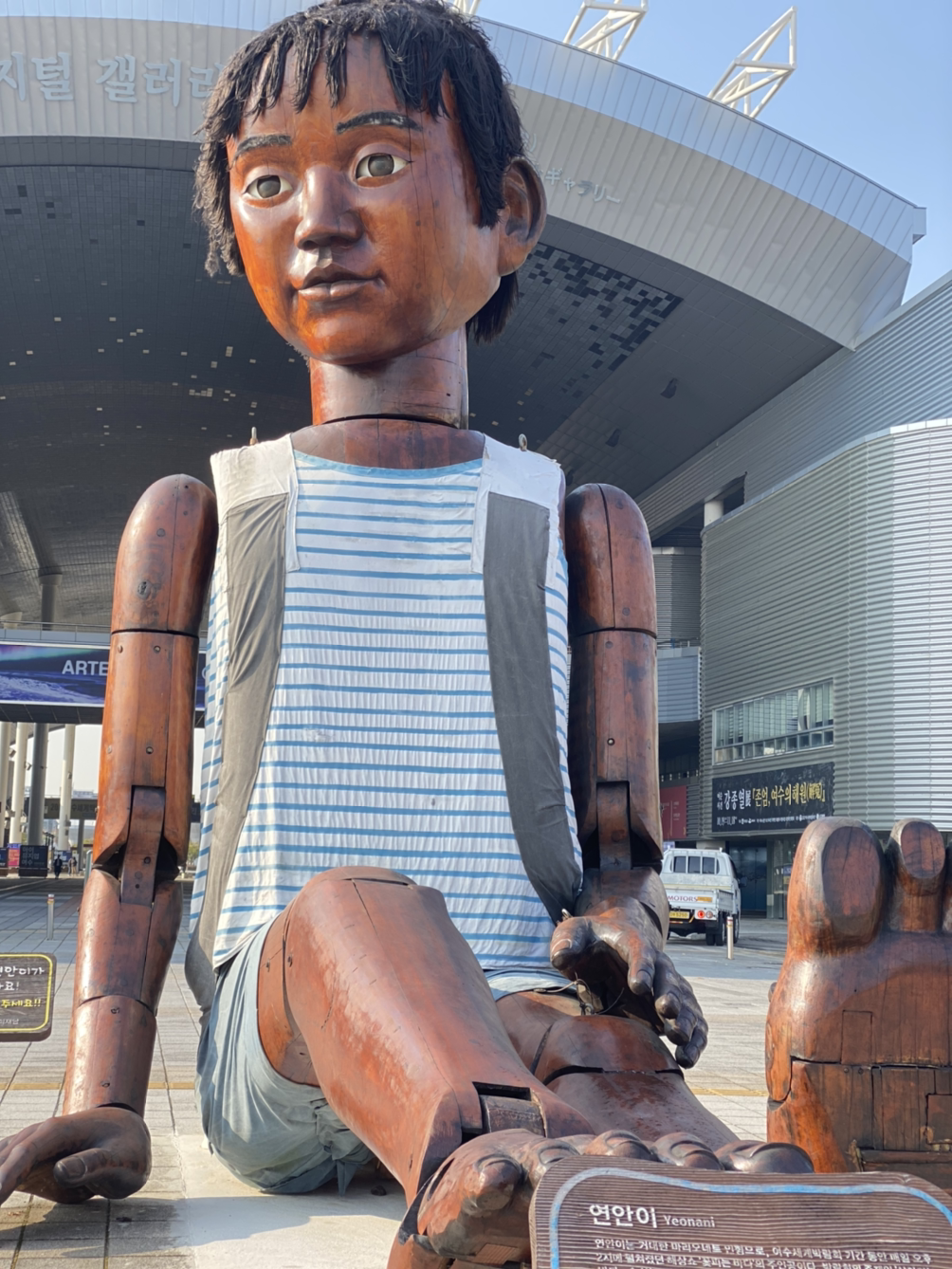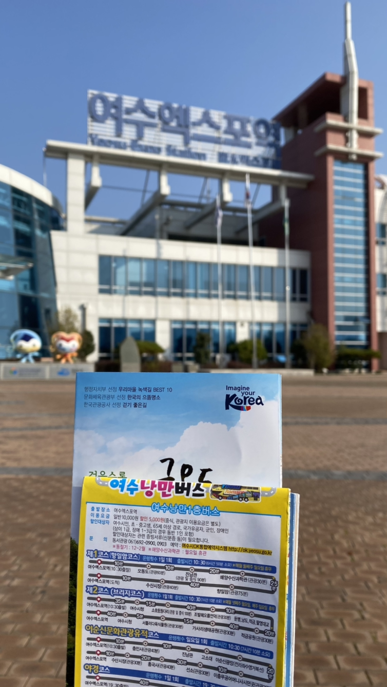 버스 시간이 남아 길 앞의 광장에 갔다. '연안이'라는 조각상이 있다. 연안이는 여수엑스포 기간에 분수쇼의 주인공이었다고 한다.