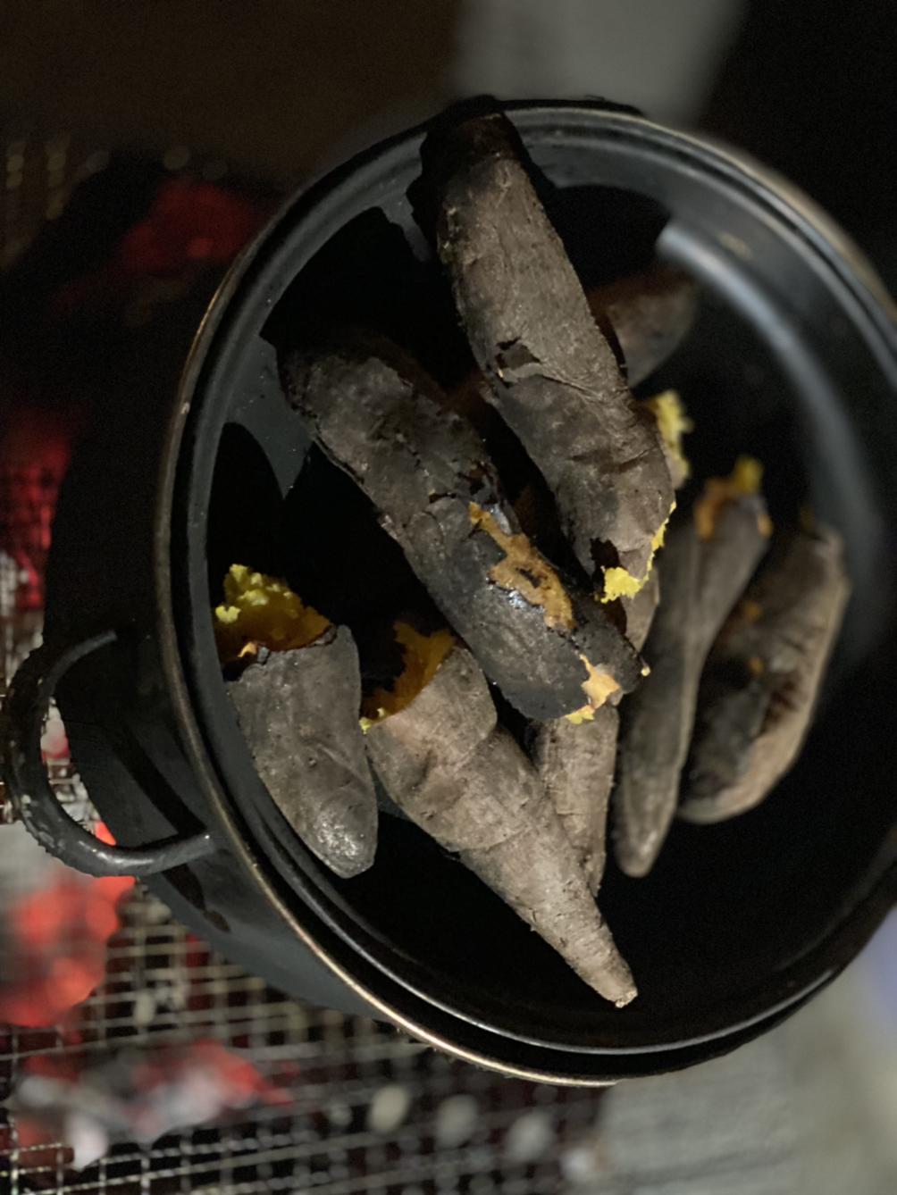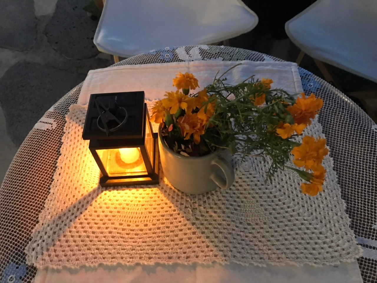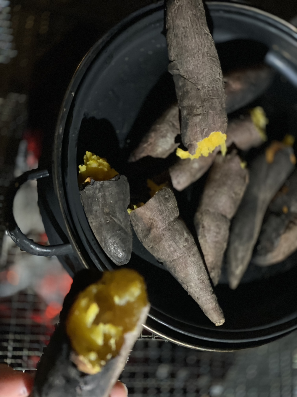 재밌게 놀고 떠드는 사이 밤이 되어 '모닝'간판에 불이 들어왔다. 내가 직접 불 피워보기는 처음이다. 착화제 두 알을 넣고 불을 붙였다. 시골 농막에서 가져온 장작은 활활 잘 타올랐다. 아주 작은 불멍 화로라서 심하게 불이 타 오르지는 않고 적당하다.