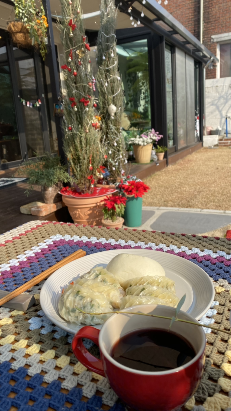 않기 때문이다. 따뜻한 뱅쇼와 찐빵을 먹은 후, 드립 커피 한잔과 만두를 먹었다.