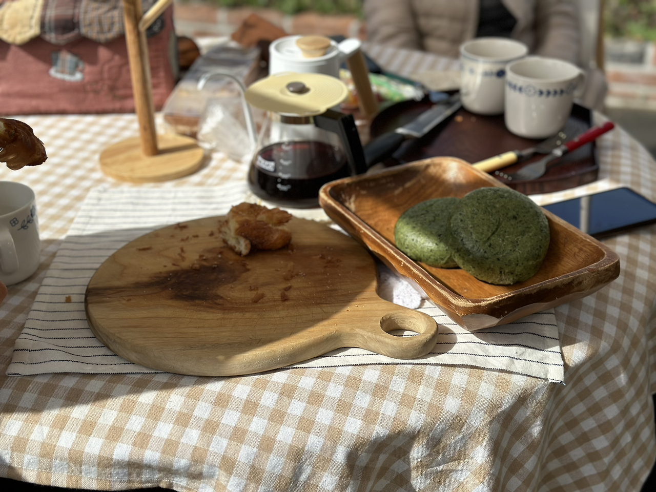 오전에 그림 수강이 있다. 일단 먹고 보자는 심산으로 우리는 커피와 차, 오븐에 구운 빵, 그리고 제주에서 가져온 빵을 먹는다.